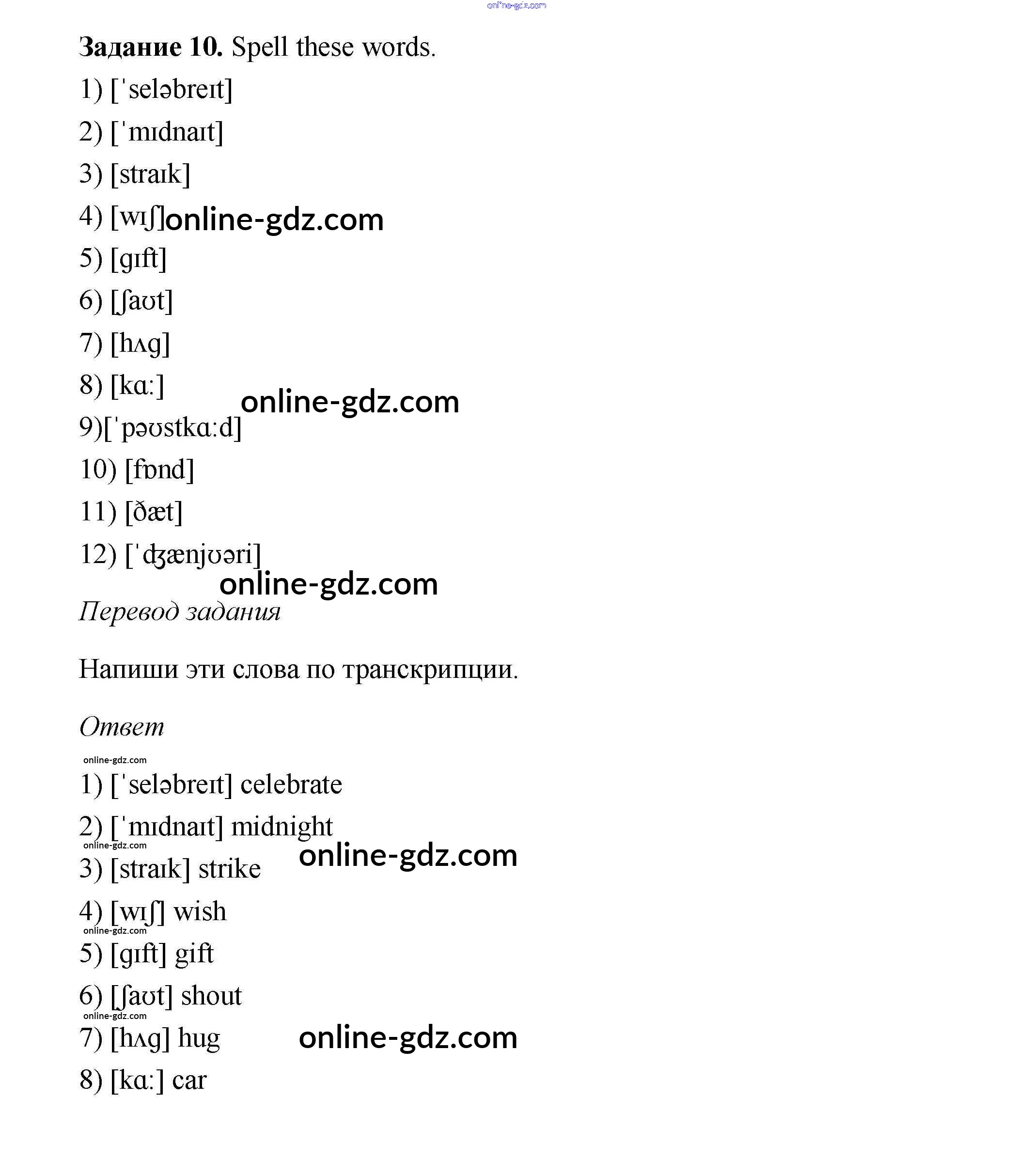 Готовые домашние задания по Английскому языку за 6 класс Учебник Афанасьева, Михеева Rainbow 2017 - Step 2 Unit 3 10