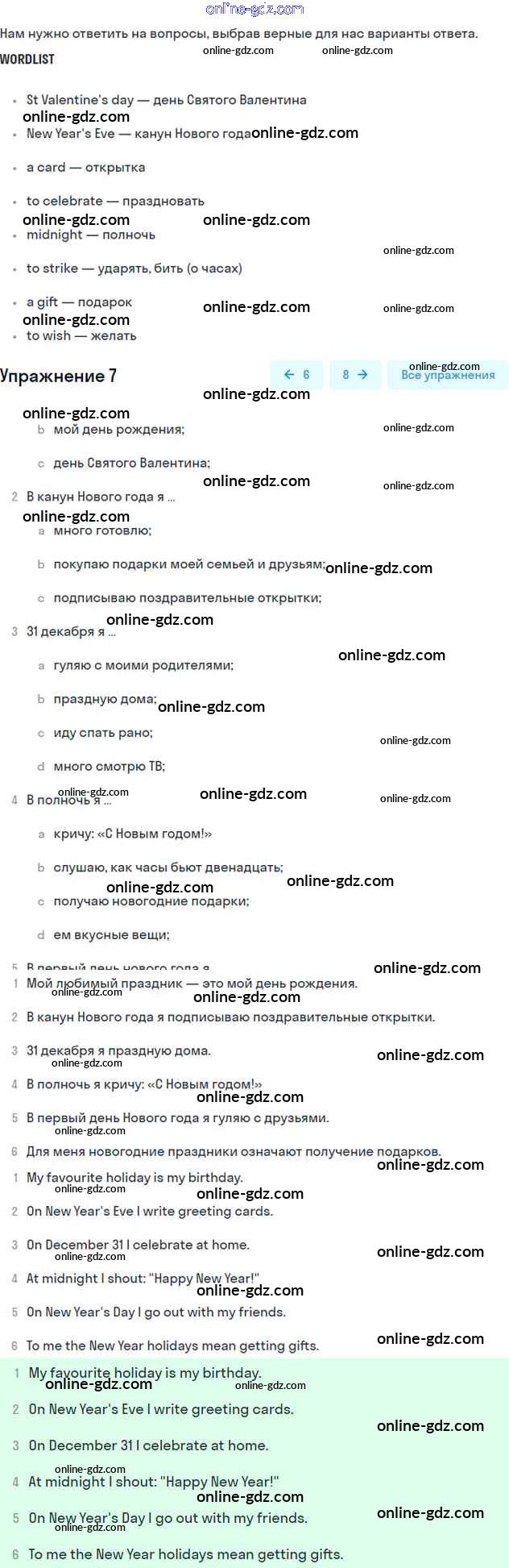 Готовые домашние задания по Английскому языку за 6 класс Учебник Афанасьева, Михеева Rainbow 2017 - Step 3 Unit 3 7