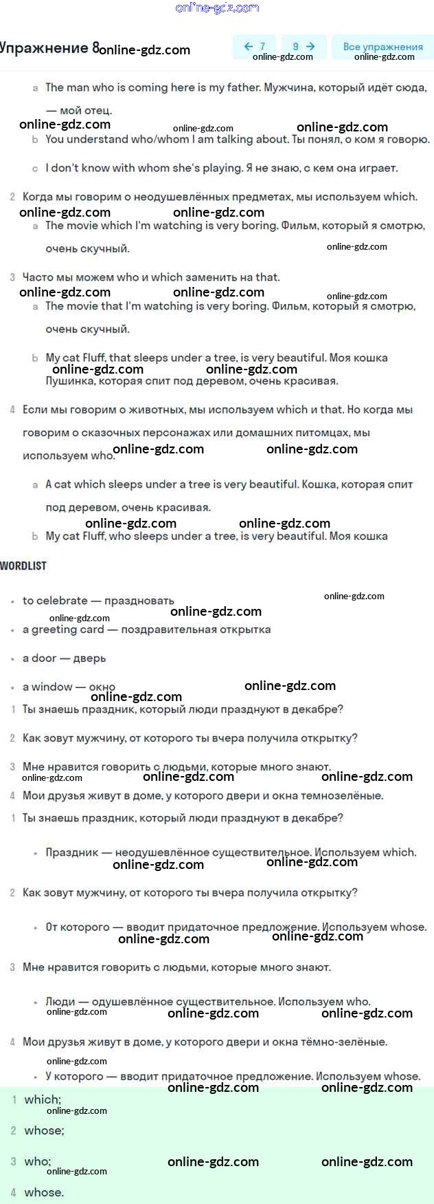 Готовые домашние задания по Английскому языку за 6 класс Учебник Афанасьева, Михеева Rainbow 2017 - Step 3 Unit 3 8