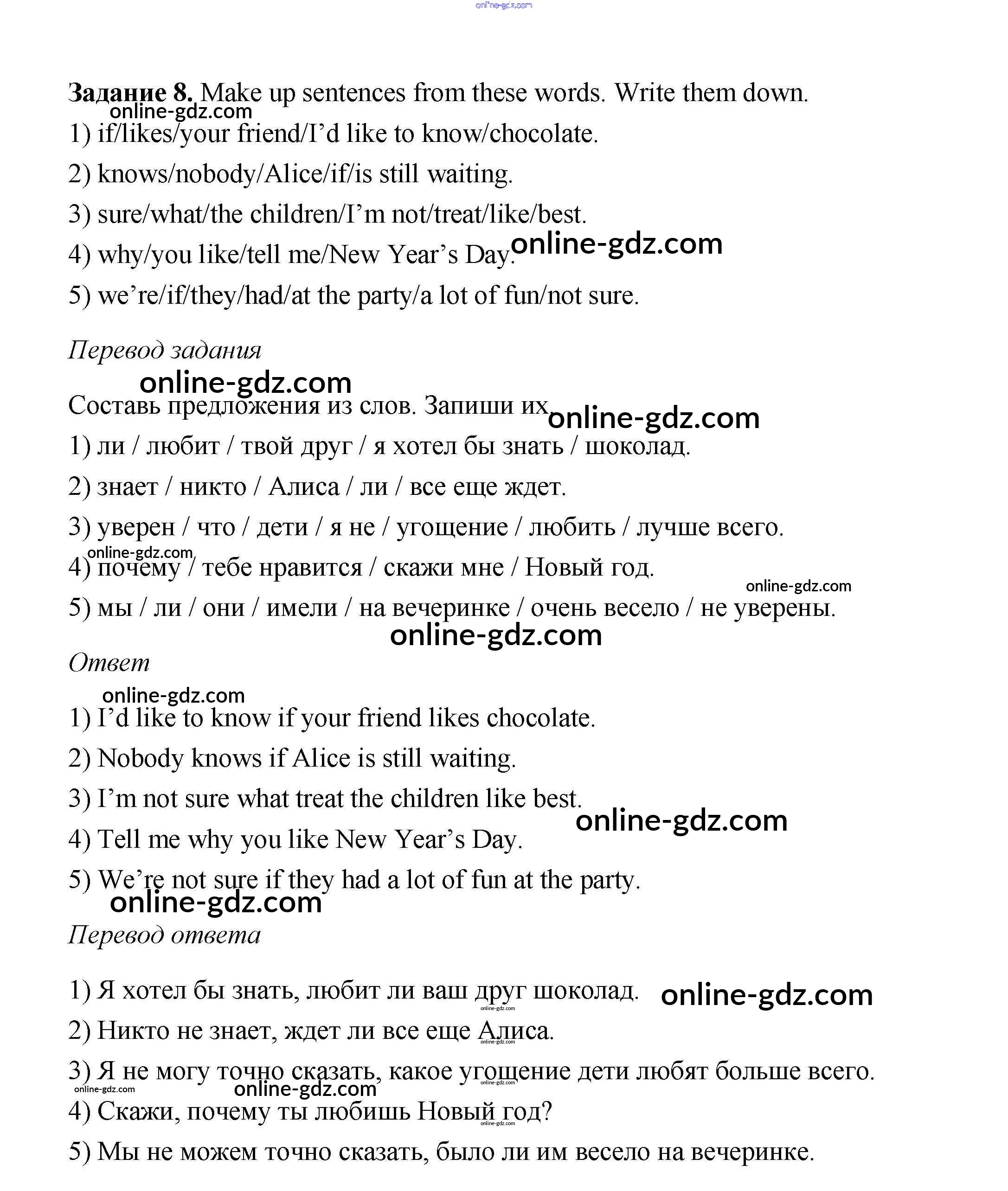 Готовые домашние задания по Английскому языку за 6 класс Учебник Афанасьева, Михеева Rainbow 2017 - Step 4 Unit 3 8