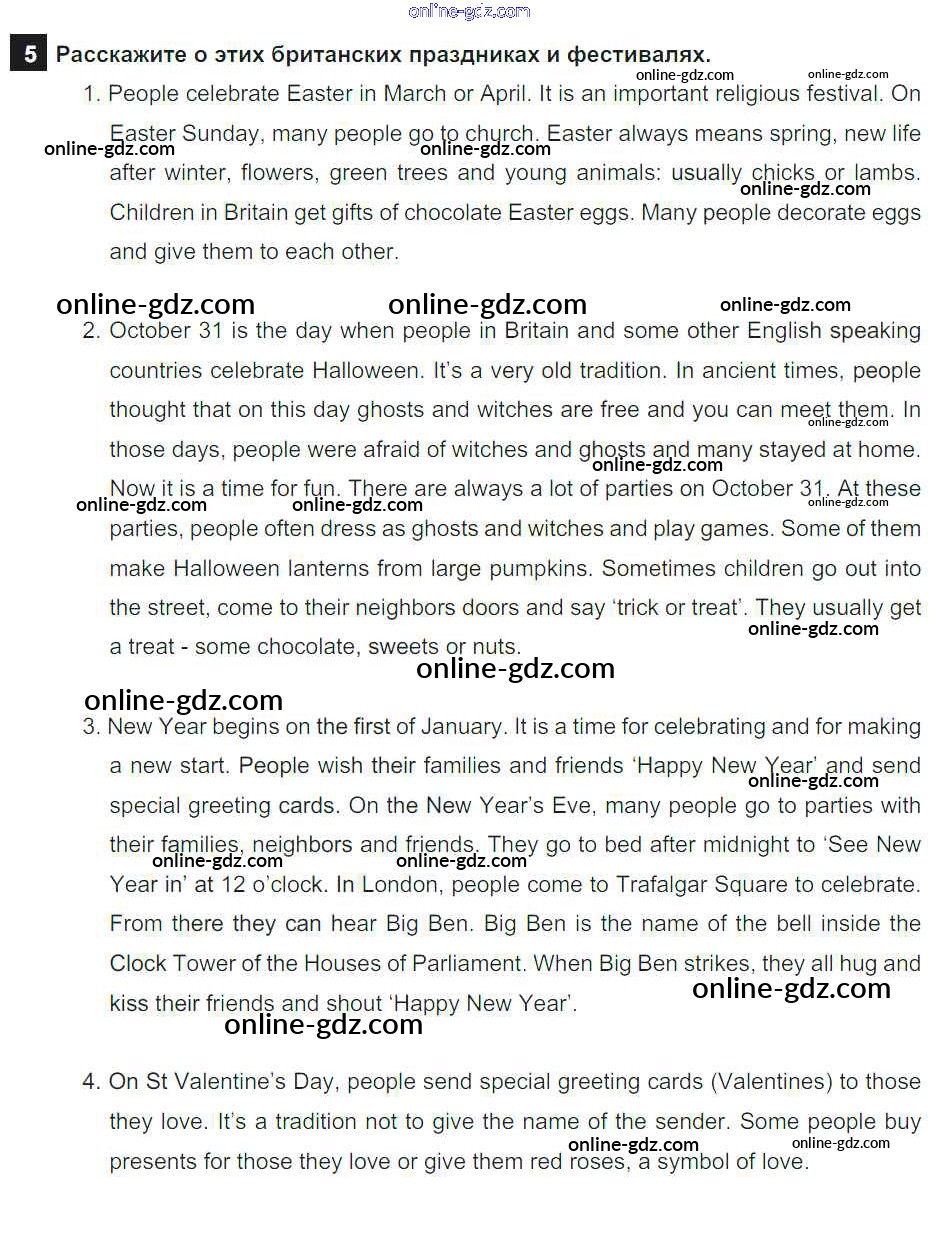 Готовые домашние задания по Английскому языку за 6 класс Учебник Афанасьева, Михеева Rainbow 2017 - Step 5 Unit 3 5