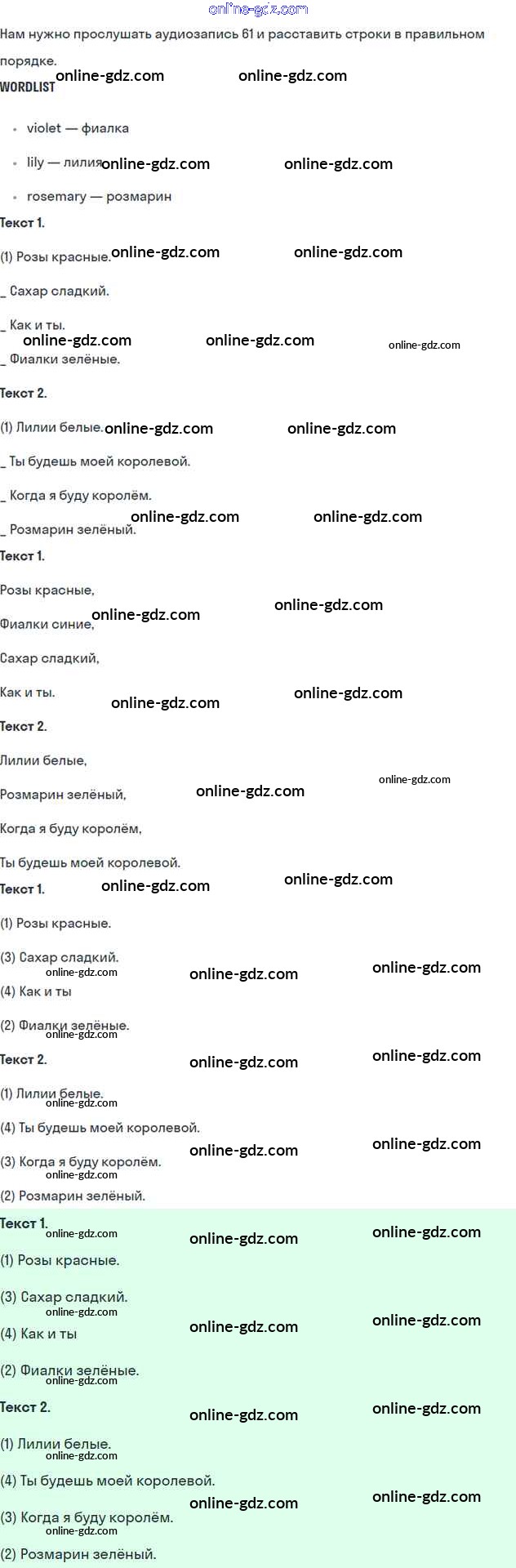 Готовые домашние задания по Английскому языку за 6 класс Учебник Афанасьева, Михеева Rainbow 2017 - Step 6 Unit 3 1