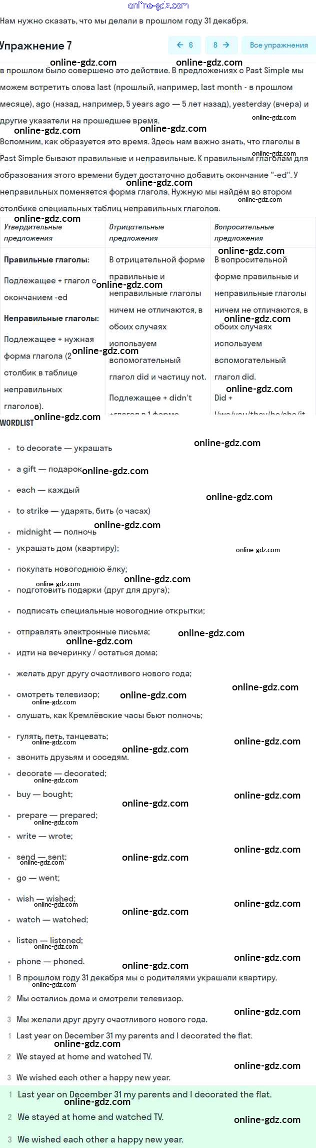 Готовые домашние задания по Английскому языку за 6 класс Учебник Афанасьева, Михеева Rainbow 2017 - Step 6 Unit 3 7