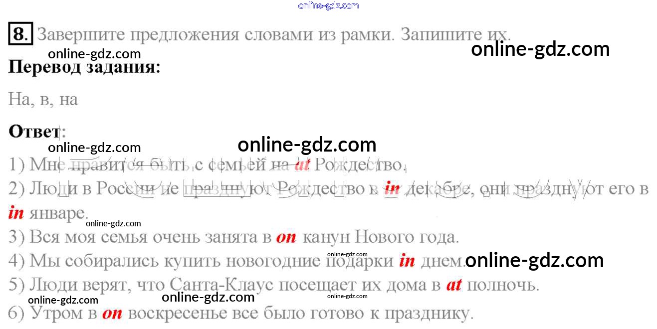 Готовые домашние задания по Английскому языку за 6 класс Учебник Афанасьева, Михеева Rainbow 2017 - Step 7 Unit 3 8