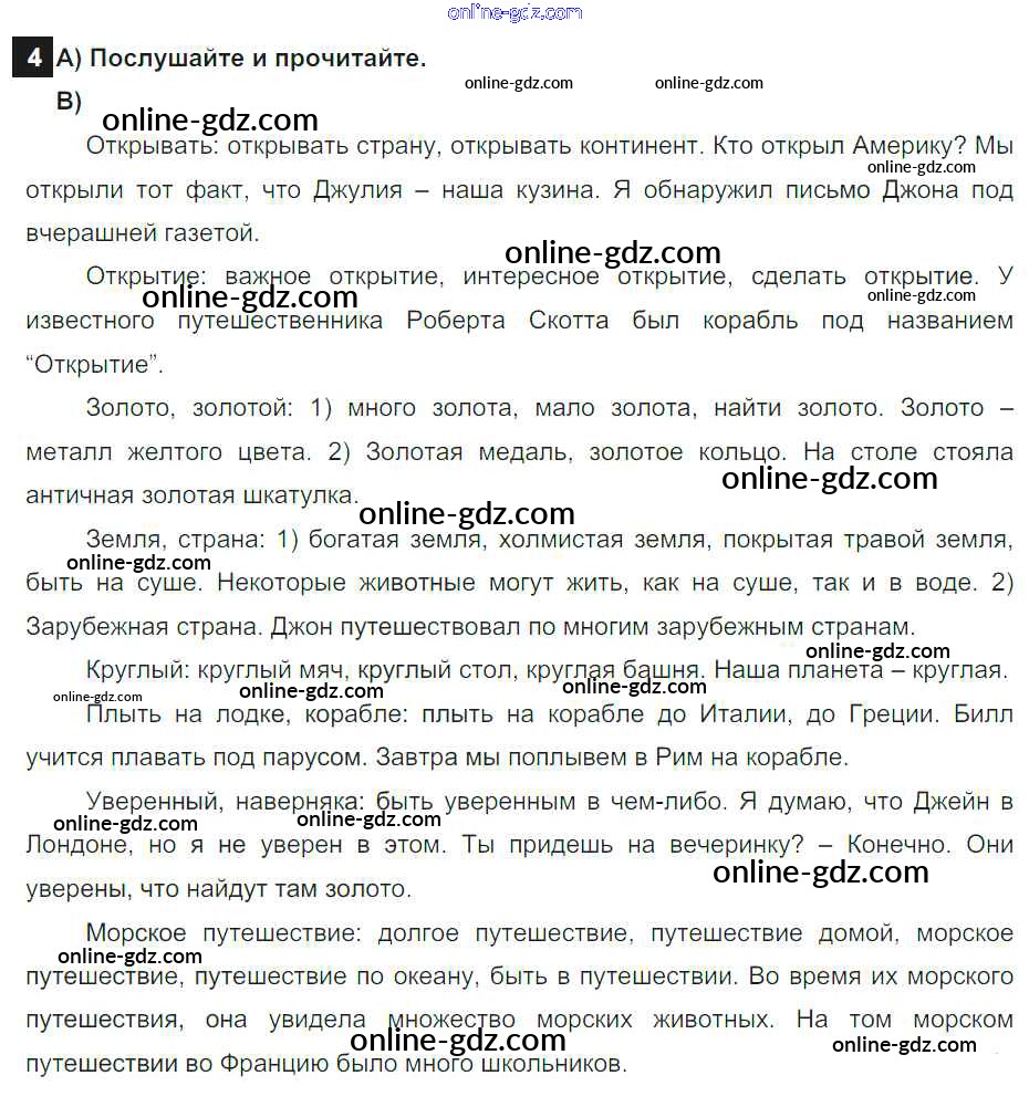 Готовые домашние задания по Английскому языку за 6 класс Учебник Афанасьева, Михеева Rainbow 2017 - Step 1 Unit 4 4