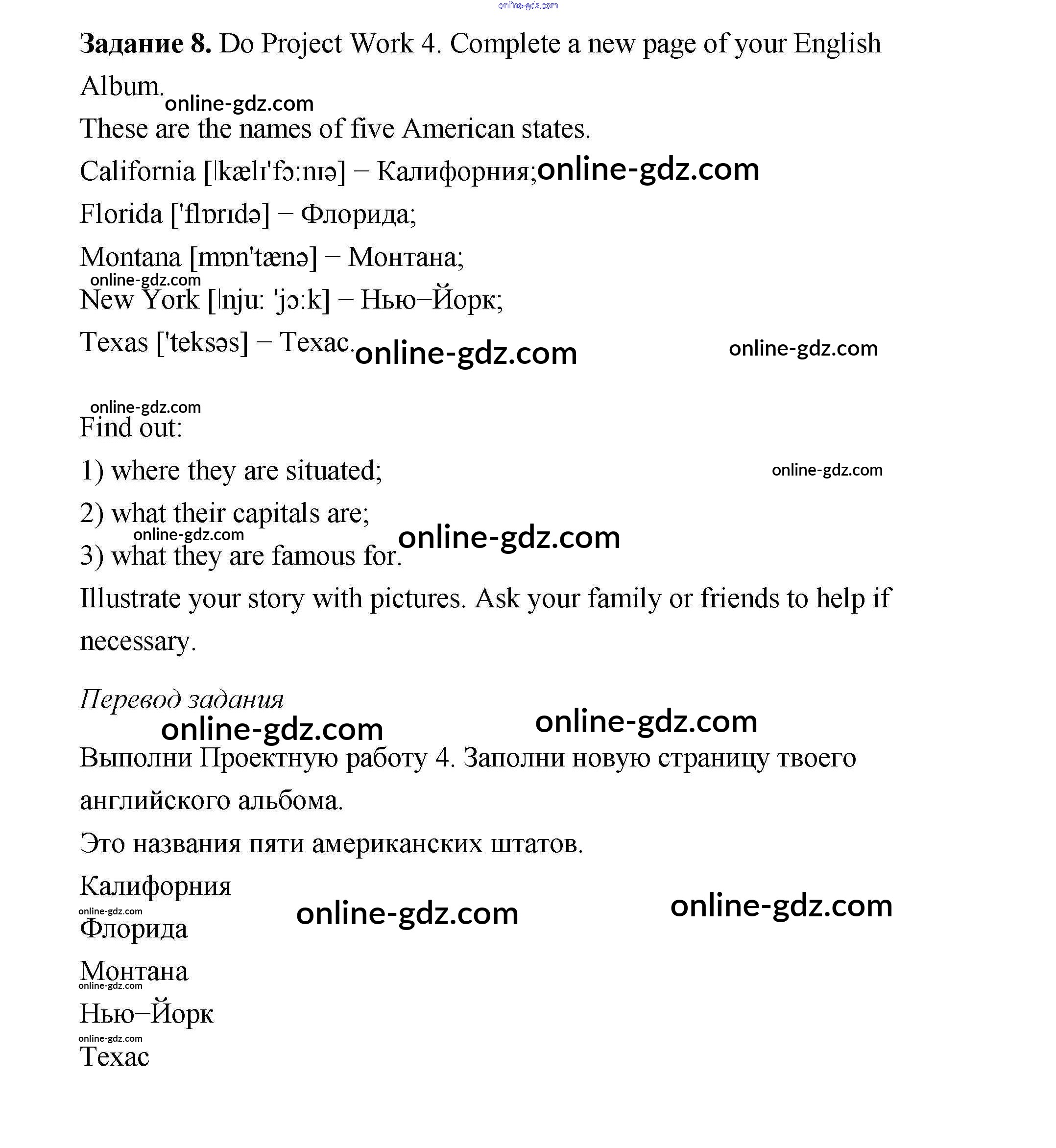 Готовые домашние задания по Английскому языку за 6 класс Учебник Афанасьева, Михеева Rainbow 2017 - Step 10 Unit 4 8