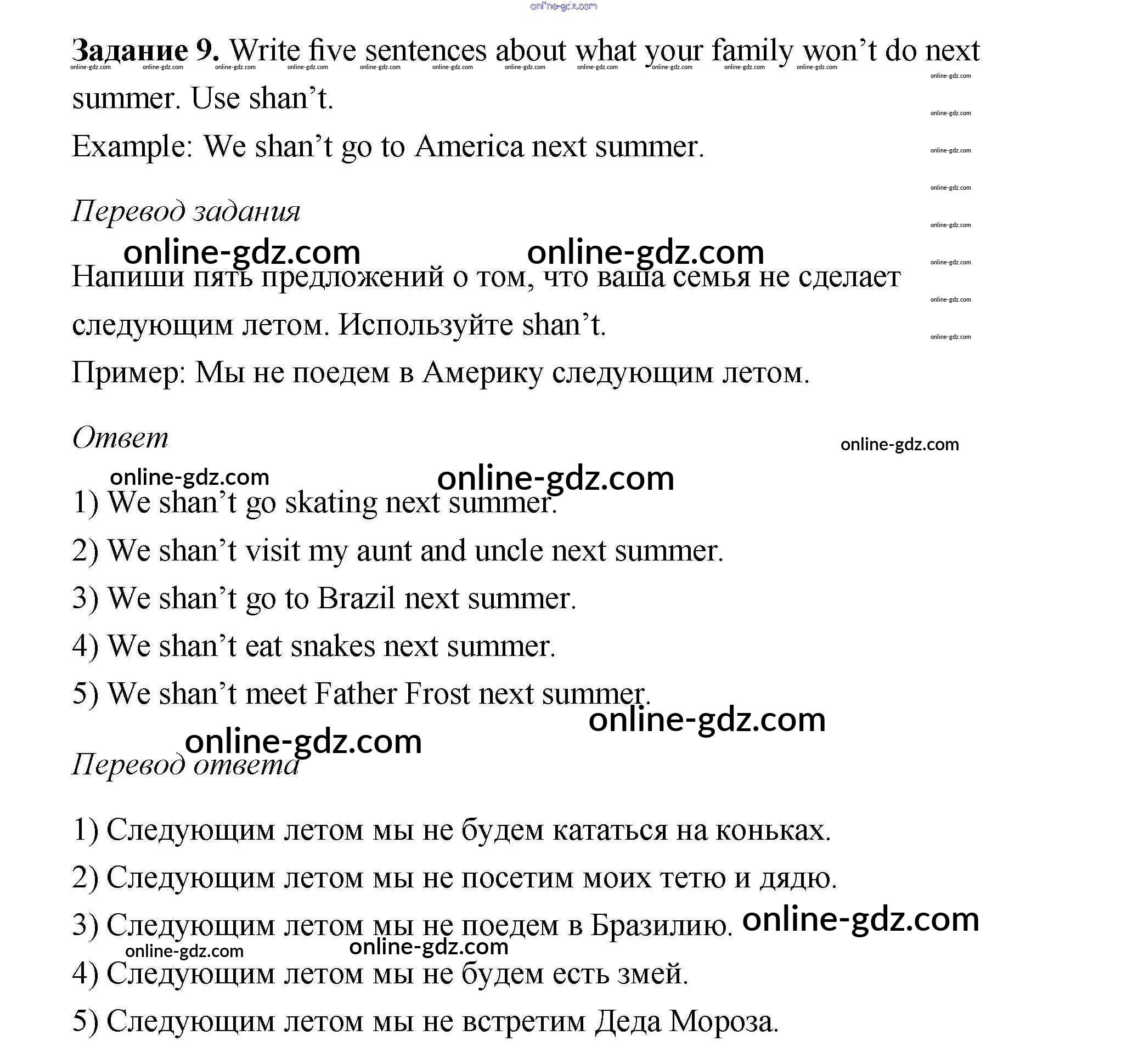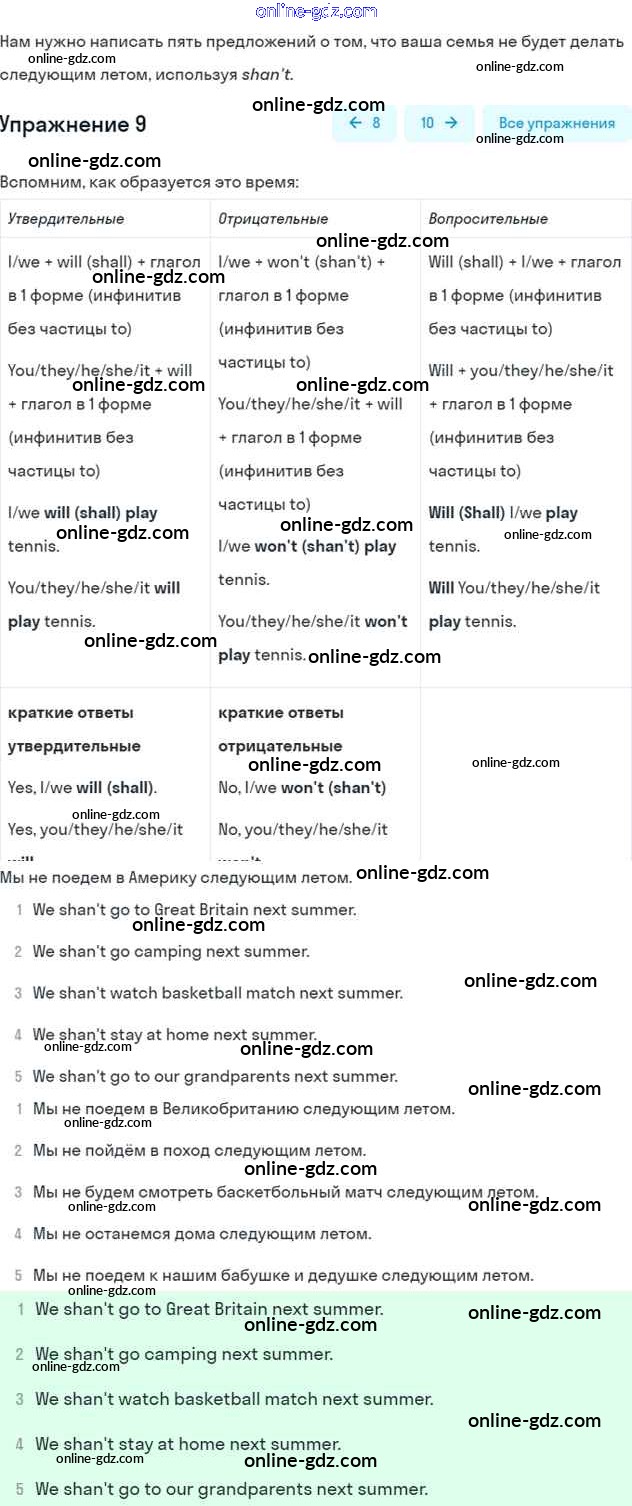 Готовые домашние задания по Английскому языку за 6 класс Учебник Афанасьева, Михеева Rainbow 2017 - Step 2 Unit 4 9