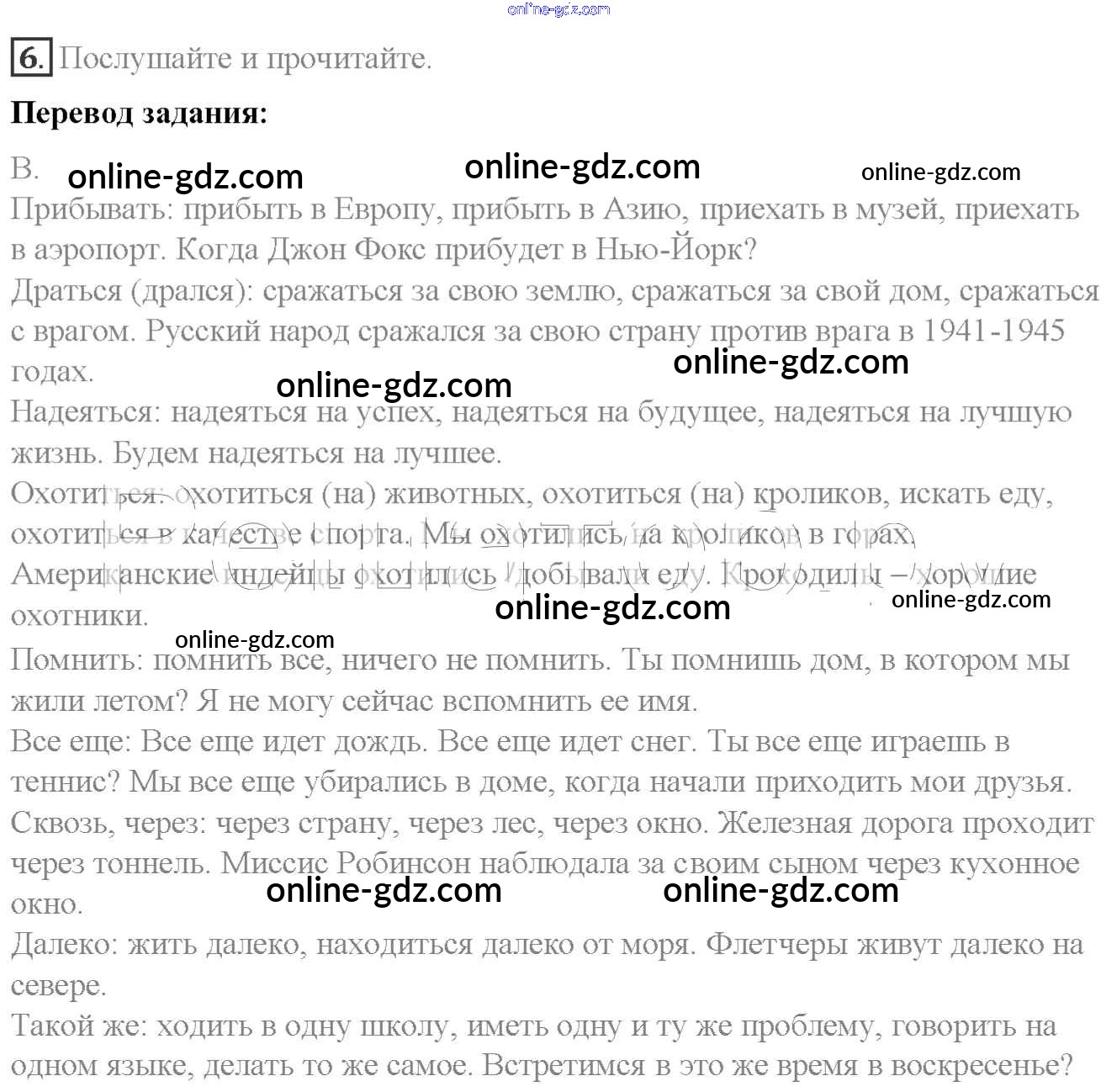 Готовые домашние задания по Английскому языку за 6 класс Учебник Афанасьева, Михеева Rainbow 2017 - Step 3 Unit 4 6