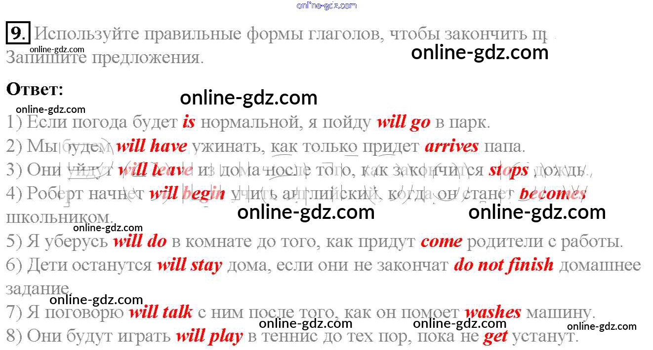 Готовые домашние задания по Английскому языку за 6 класс Учебник Афанасьева, Михеева Rainbow 2017 - Step 8 Unit 4 9