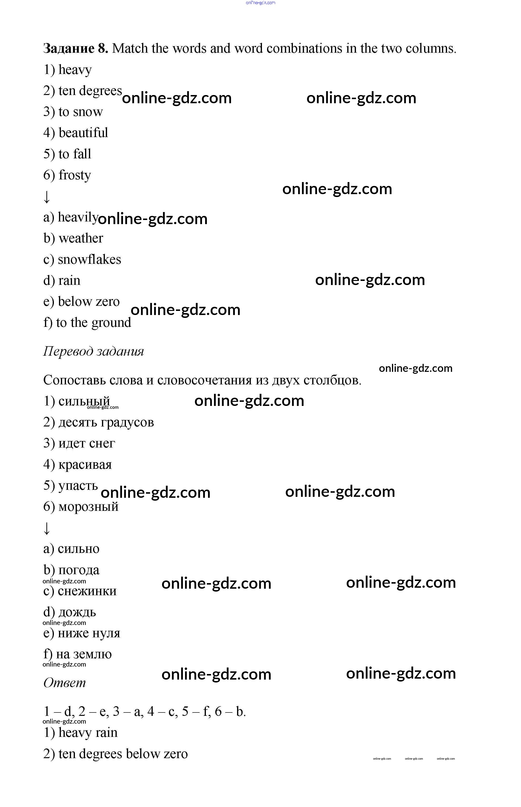 Готовые домашние задания по Английскому языку за 6 класс Учебник Афанасьева, Михеева Rainbow 2017 - Step 1 Unit 5 8
