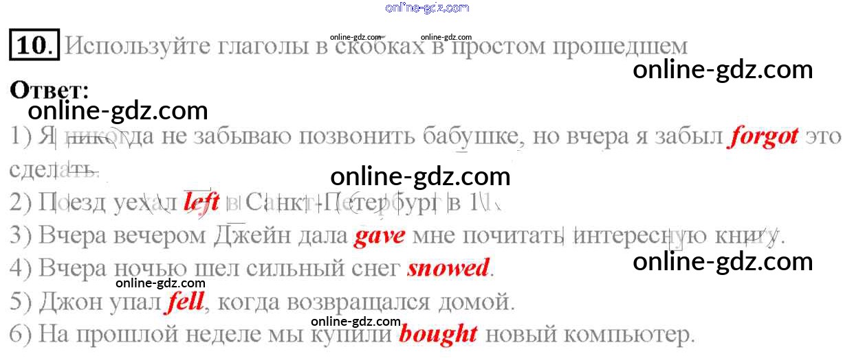 Готовые домашние задания по Английскому языку за 6 класс Учебник Афанасьева, Михеева Rainbow 2017 - Step 2 Unit 5 10