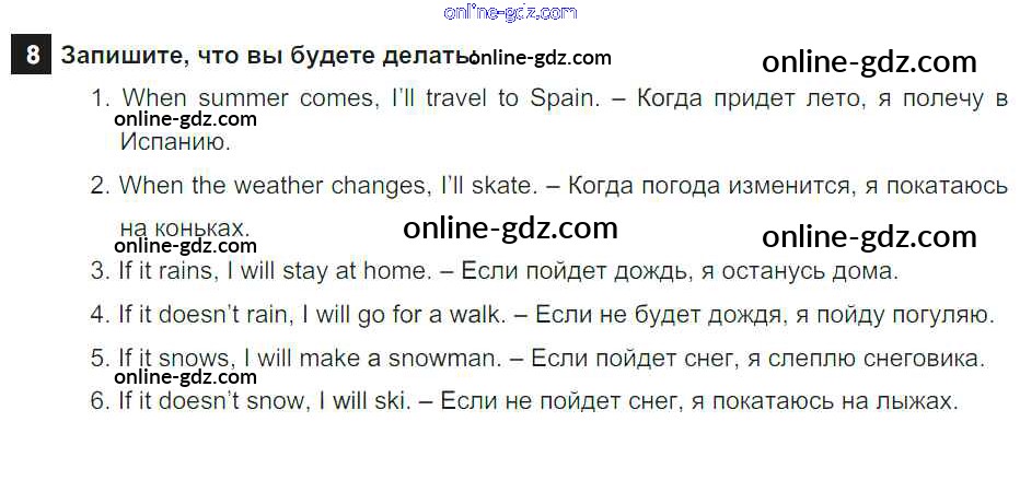 Готовые домашние задания по Английскому языку за 6 класс Учебник Афанасьева, Михеева Rainbow 2017 - Step 2 Unit 5 8
