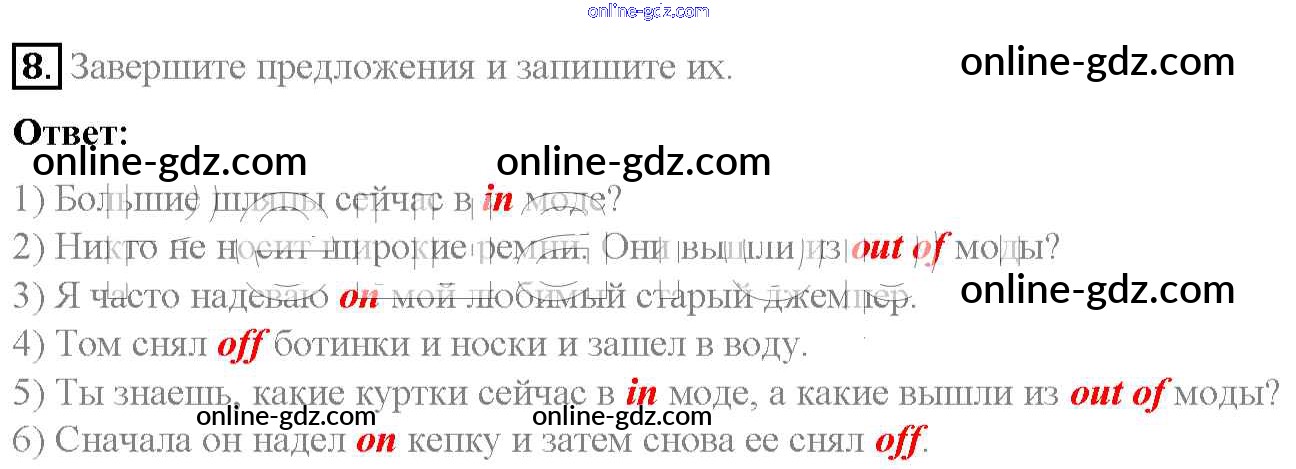 Готовые домашние задания по Английскому языку за 6 класс Учебник Афанасьева, Михеева Rainbow 2017 - Step 4 Unit 5 8