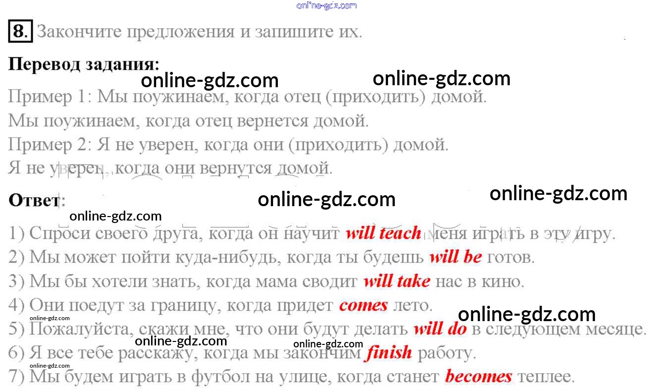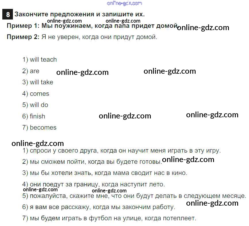 Готовые домашние задания по Английскому языку за 6 класс Учебник Афанасьева, Михеева Rainbow 2017 - Step 6 Unit 5 8