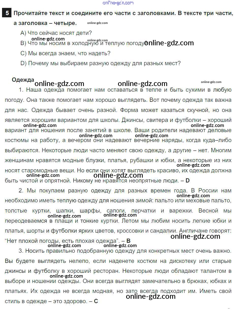 Готовые домашние задания по Английскому языку за 6 класс Учебник Афанасьева, Михеева Rainbow 2017 - Step 8 Unit 5 5