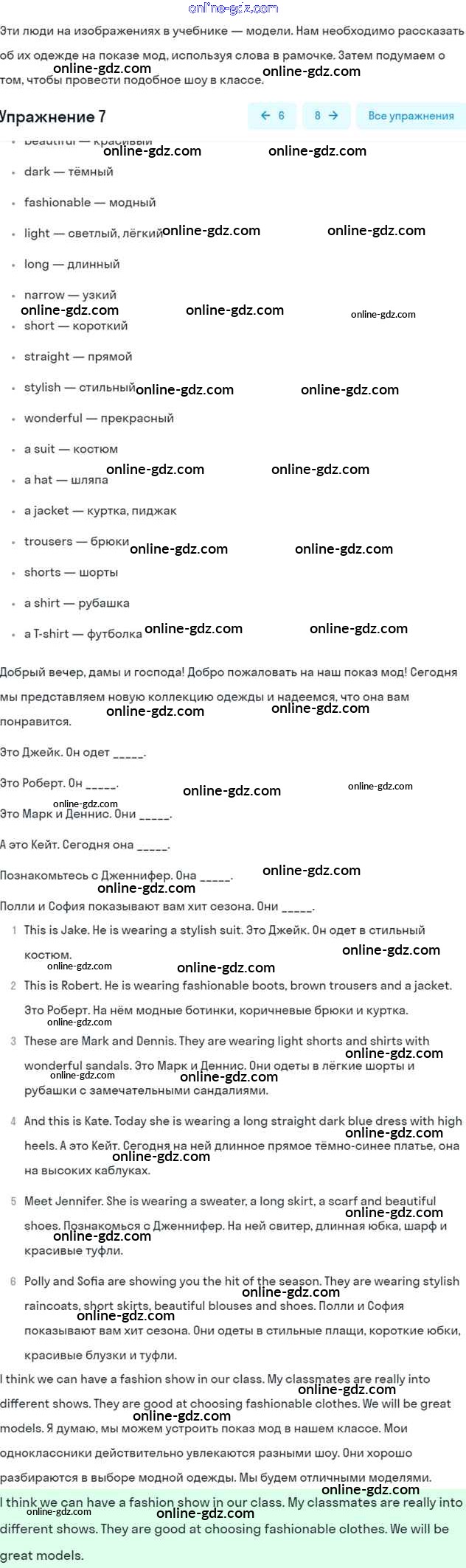 Готовые домашние задания по Английскому языку за 6 класс Учебник Афанасьева, Михеева Rainbow 2017 - Step 8 Unit 5 7
