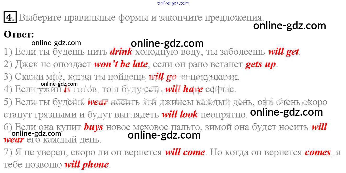 Готовые домашние задания по Английскому языку за 6 класс Учебник Афанасьева, Михеева Rainbow 2017 - Step 9 Unit 5 4