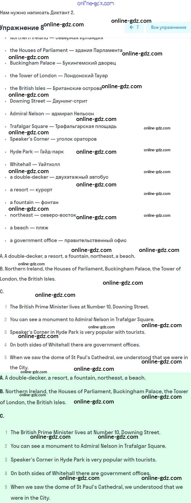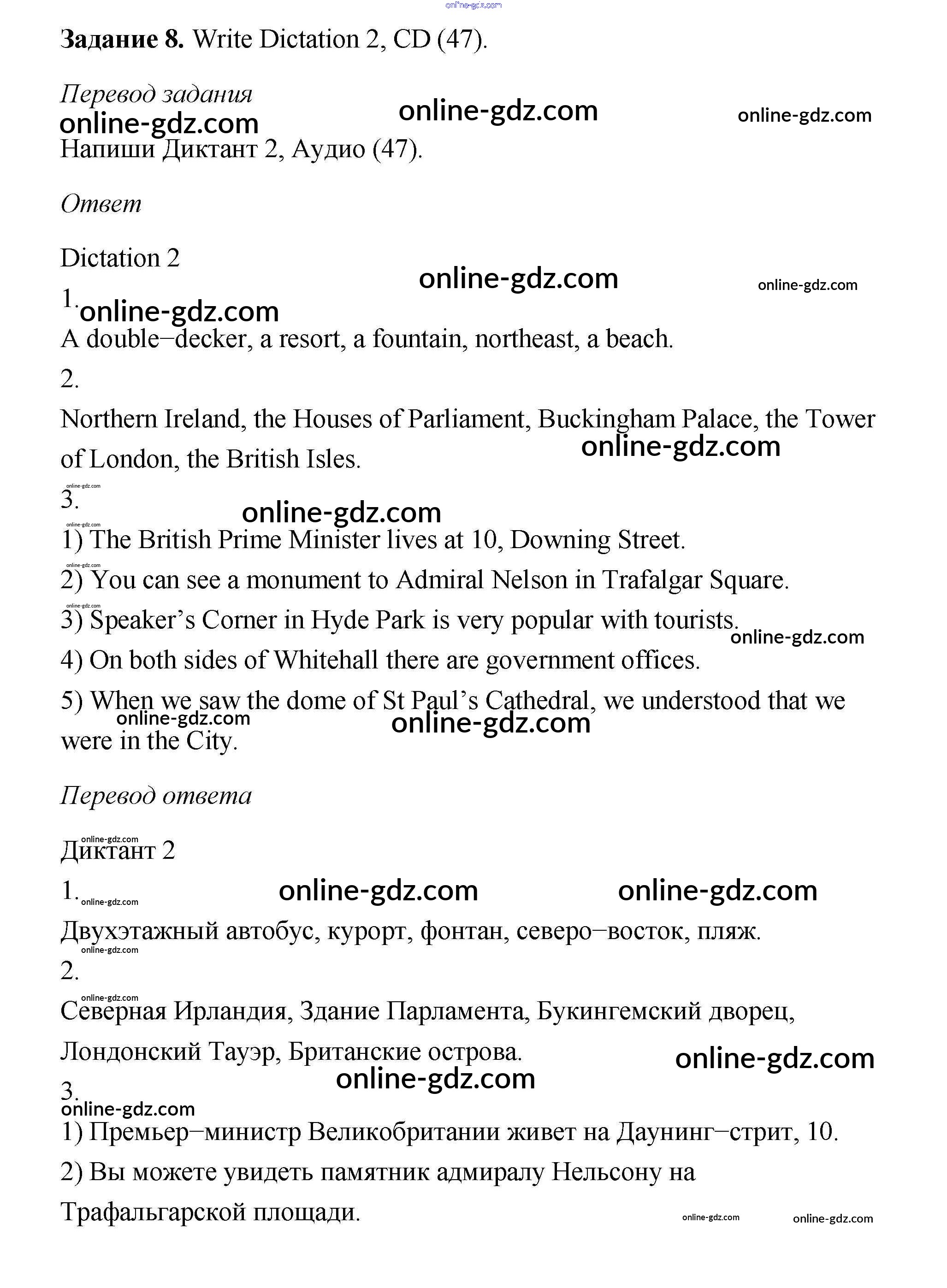 Готовые домашние задания по Английскому языку за 6 класс Учебник Афанасьева, Михеева Rainbow 2017 - Step 9 Unit 2 8