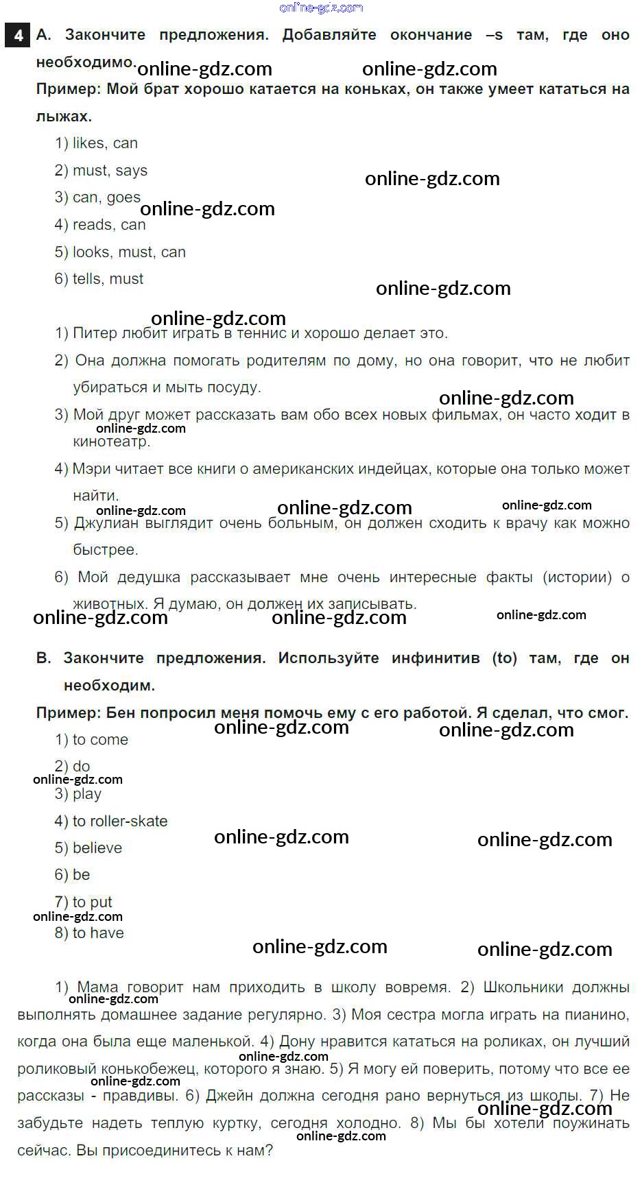 Готовые домашние задания по Английскому языку за 6 класс Учебник Афанасьева, Михеева Rainbow 2017 - Step 1 Unit 6 4