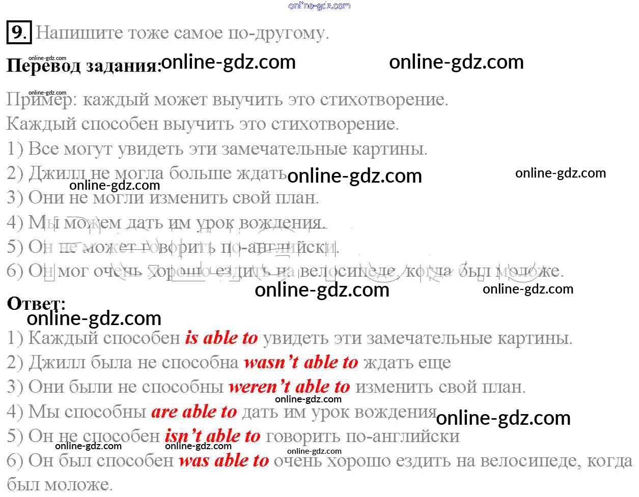 Готовые домашние задания по Английскому языку за 6 класс Учебник Афанасьева, Михеева Rainbow 2017 - Step 1 Unit 6 9