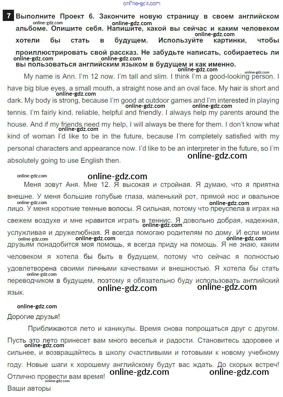 Готовые домашние задания по Английскому языку за 6 класс Учебник Афанасьева, Михеева Rainbow 2017 - Step 10 Unit 6 7
