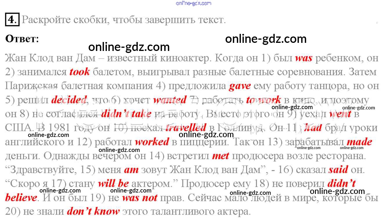 Готовые домашние задания по Английскому языку за 6 класс Учебник Афанасьева, Михеева Rainbow 2017 - Step 6 Unit 6 4