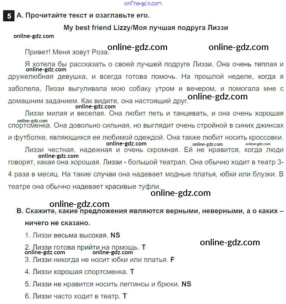 Готовые домашние задания по Английскому языку за 6 класс Учебник Афанасьева, Михеева Rainbow 2017 - Step 7 Unit 6 5