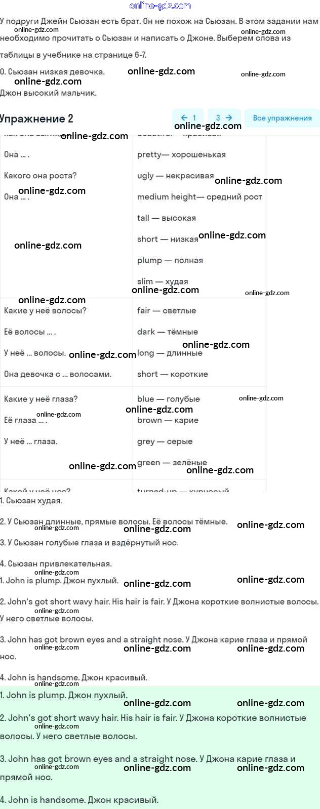 Готовые домашние задания по Английскому языку за 6 класс Учебник Кузовлев, Лапа Академический школьный учебник 2014 - Lesson 1 Unit 1. What do you look like? 2