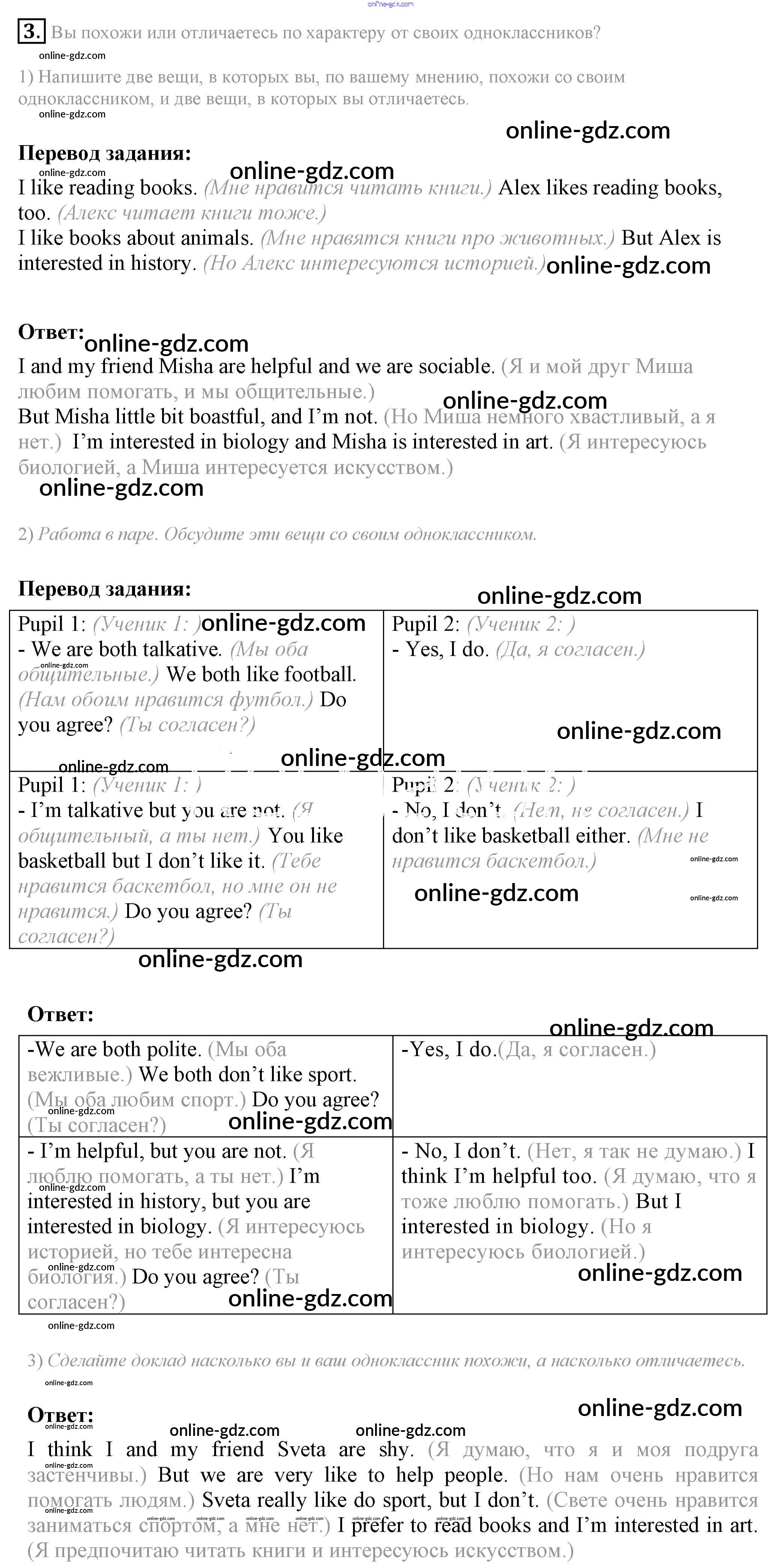 Готовые домашние задания по Английскому языку за 6 класс Учебник Кузовлев, Лапа Академический школьный учебник 2014 - Lesson 1 Unit 2. What are you like? 3