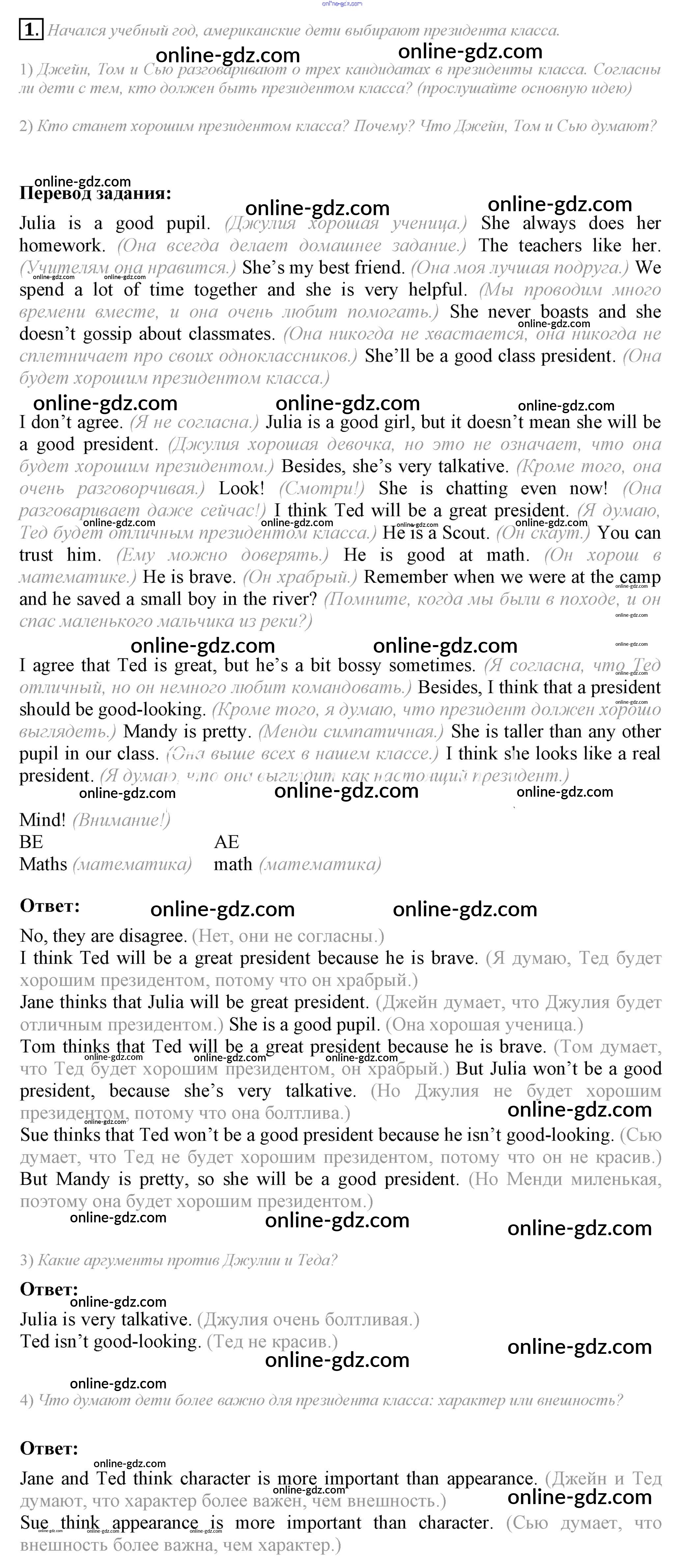 Готовые домашние задания по Английскому языку за 6 класс Учебник Кузовлев, Лапа Академический школьный учебник 2014 - Lesson 5 Unit 2. What are you like? 1