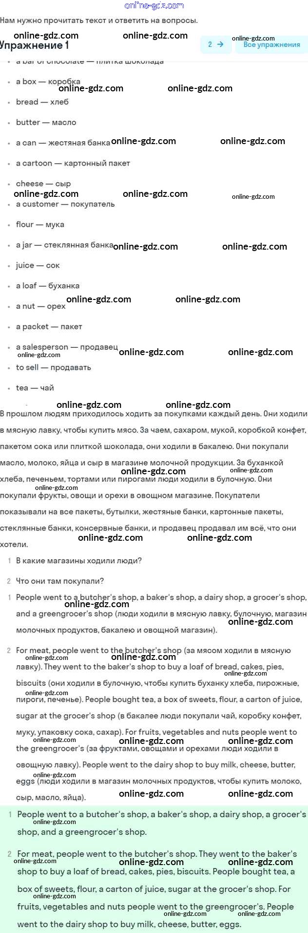 Готовые домашние задания по Английскому языку за 6 класс Учебник Кузовлев, Лапа Академический школьный учебник 2014 - Lesson 1 Unit 4. Do you like to go shopping? 1