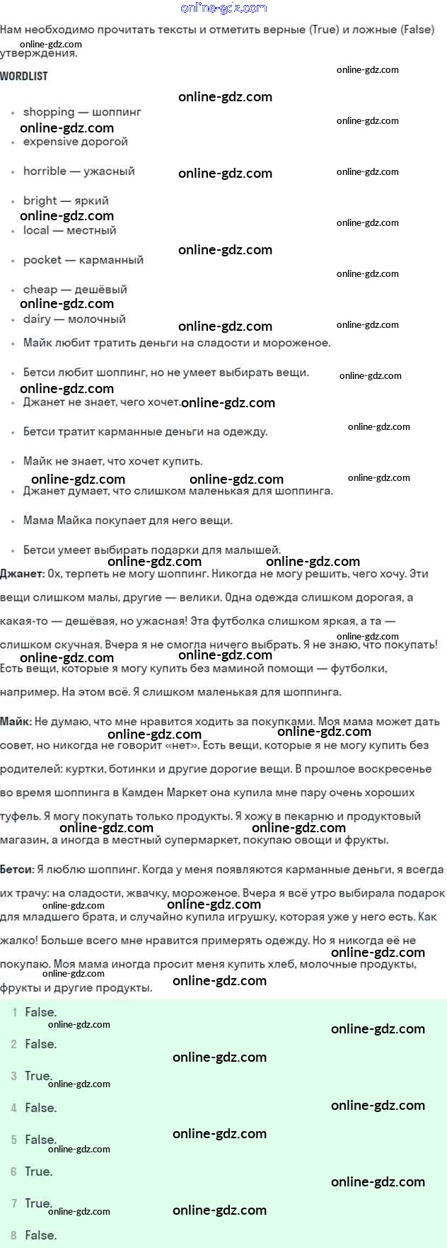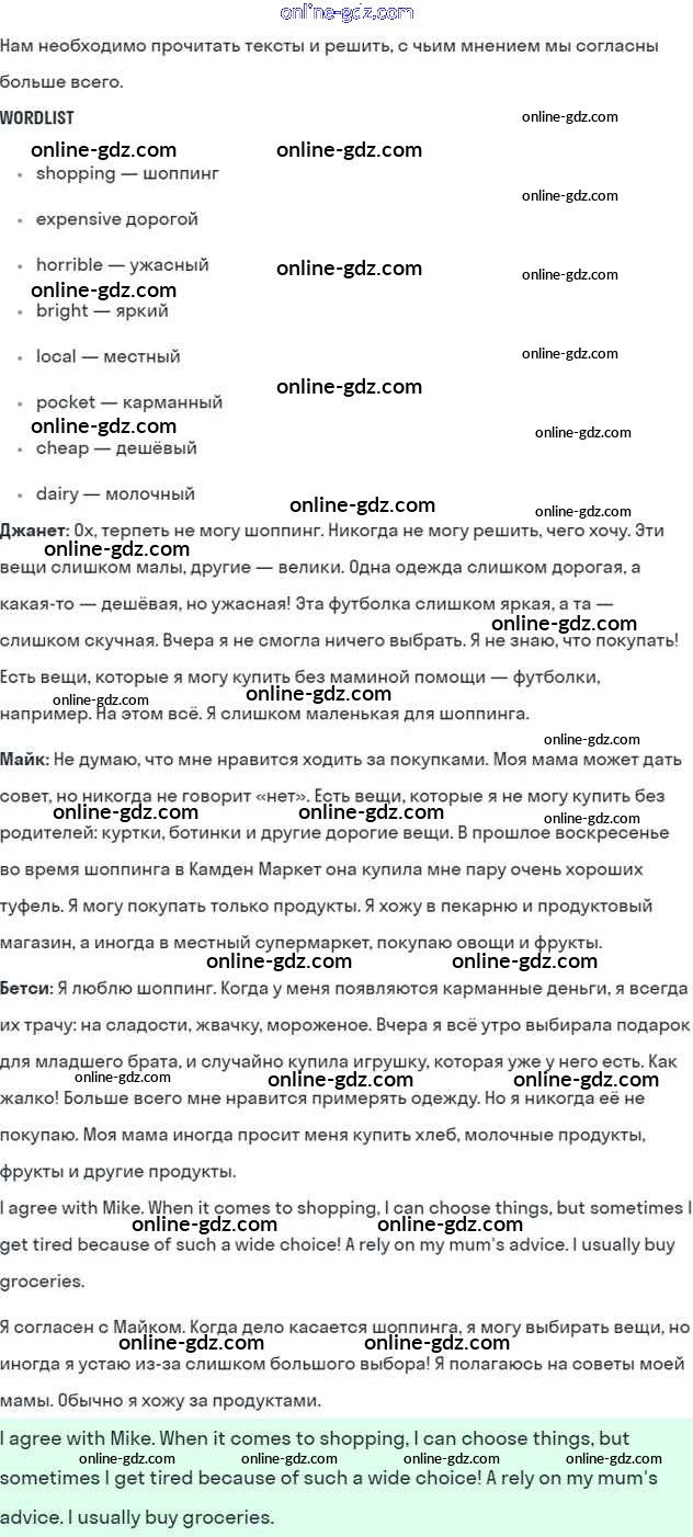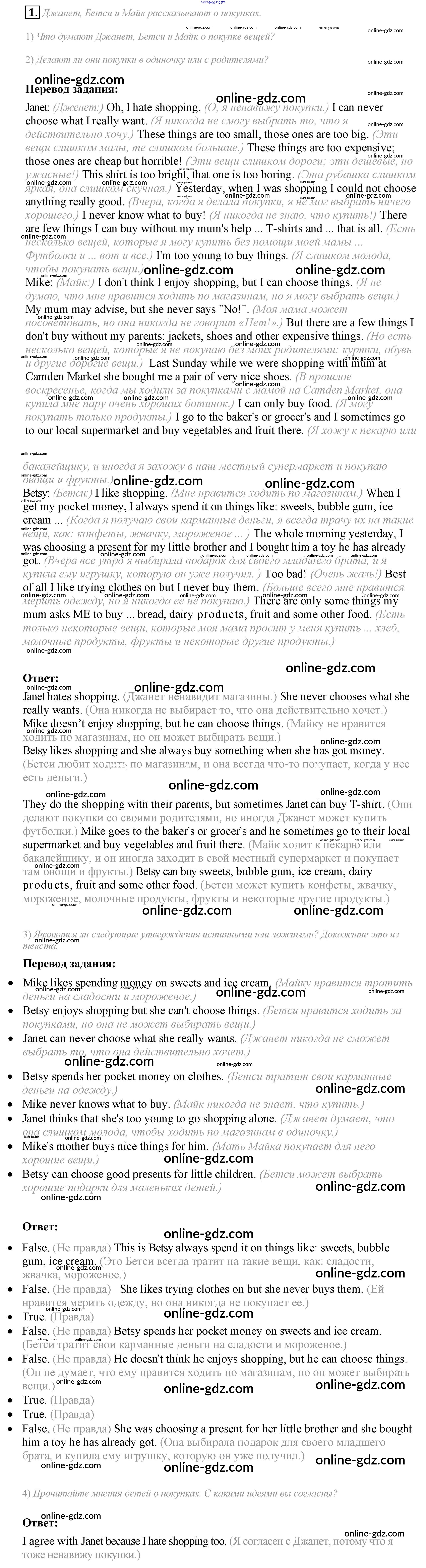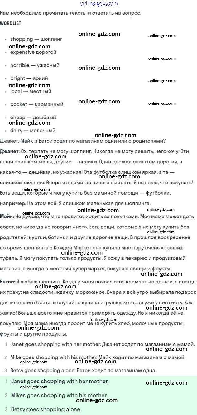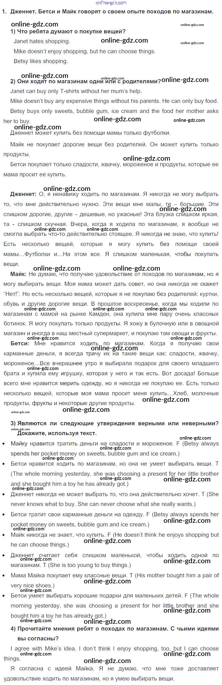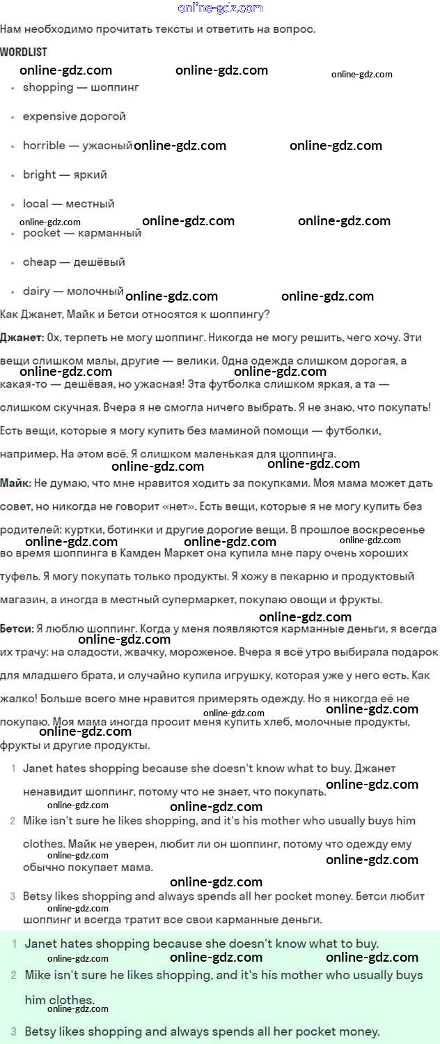 Готовые домашние задания по Английскому языку за 6 класс Учебник Кузовлев, Лапа Академический школьный учебник 2014 - Lesson 6 Unit 4. Do you like to go shopping? 1
