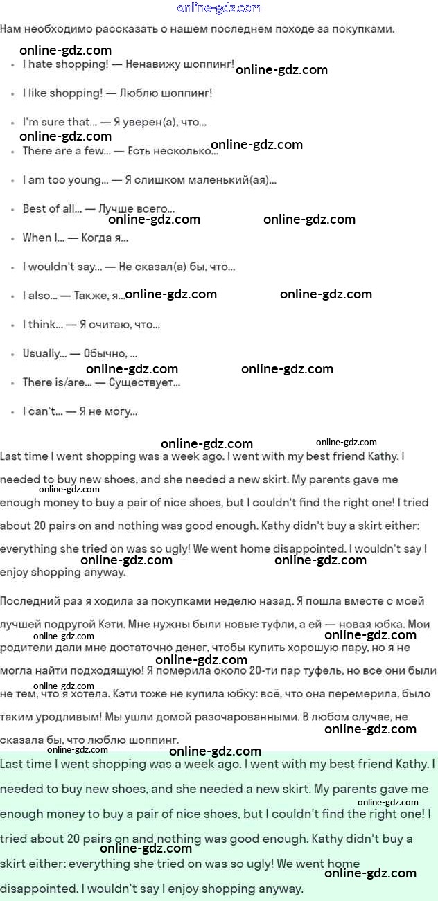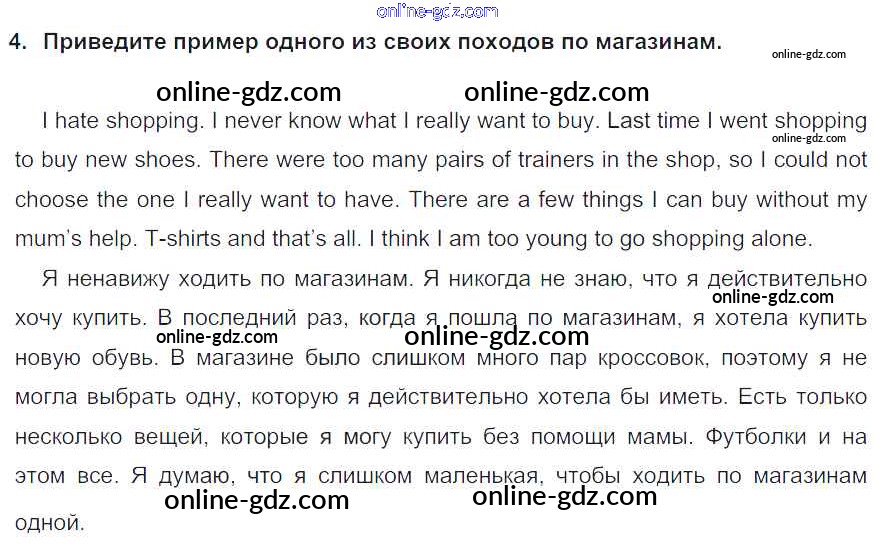 Готовые домашние задания по Английскому языку за 6 класс Учебник Кузовлев, Лапа Академический школьный учебник 2014 - Lesson 6 Unit 4. Do you like to go shopping? 4