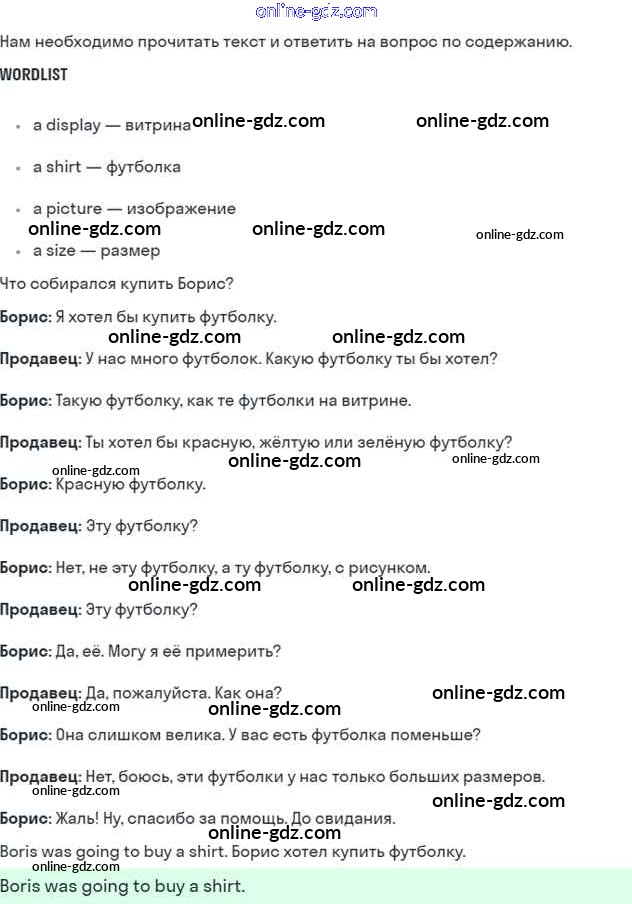 Готовые домашние задания по Английскому языку за 6 класс Учебник Кузовлев, Лапа Академический школьный учебник 2014 - Lesson 6 Unit 4. Do you like to go shopping? 6
