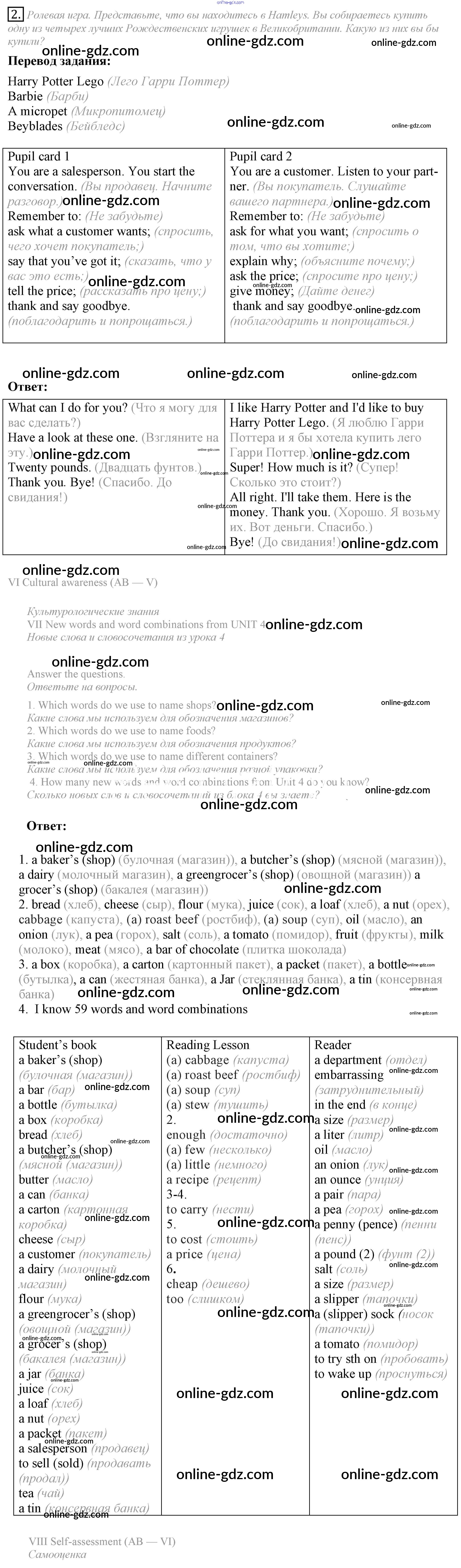 Готовые домашние задания по Английскому языку за 6 класс Учебник Кузовлев, Лапа Академический школьный учебник 2014 - Lesson 8-9 Unit 4. Do you like to go shopping? 2