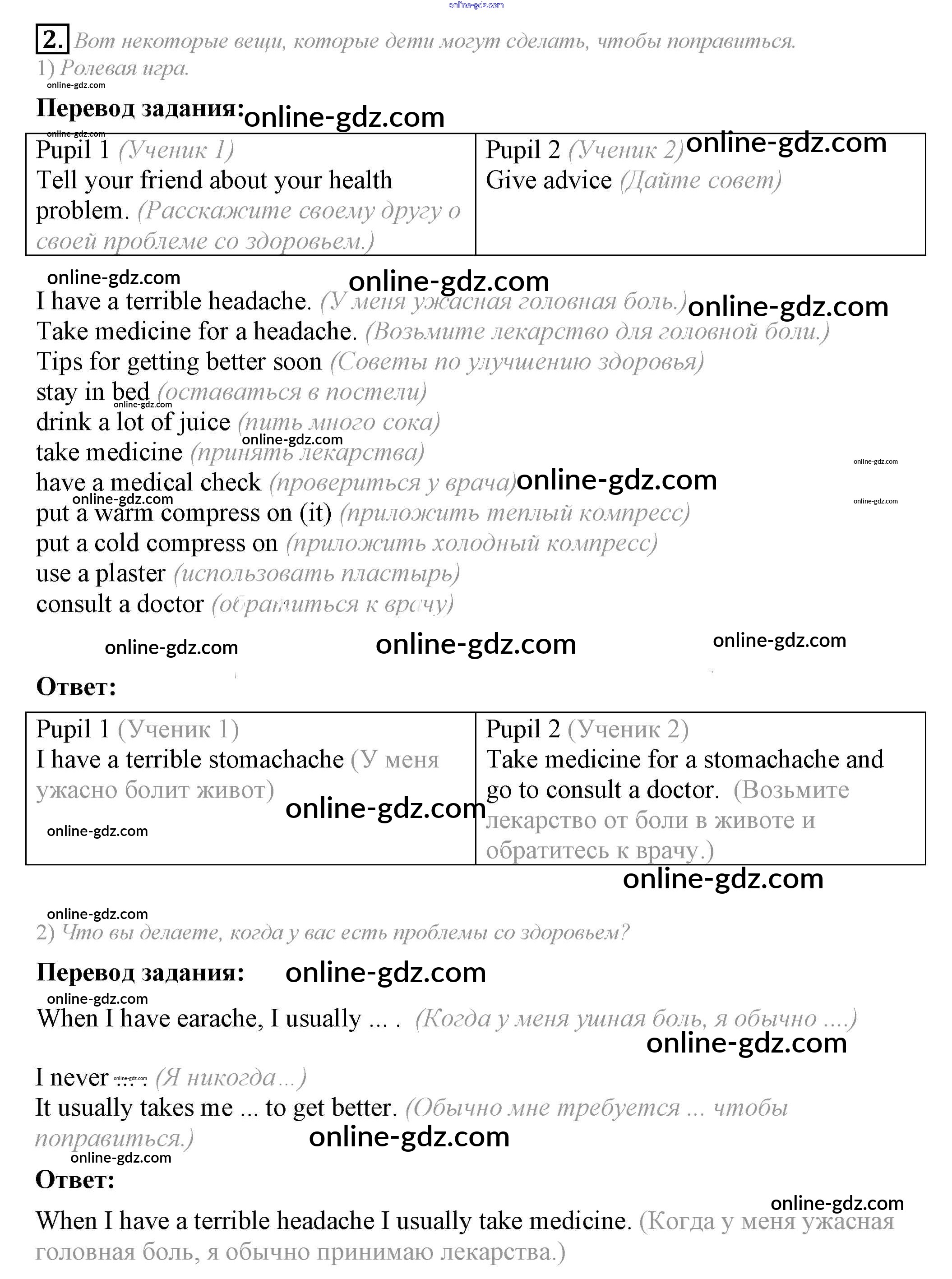 Готовые домашние задания по Английскому языку за 6 класс Учебник Кузовлев, Лапа Академический школьный учебник 2014 - Lesson 1 Unit 5. Do you care about your health? 2
