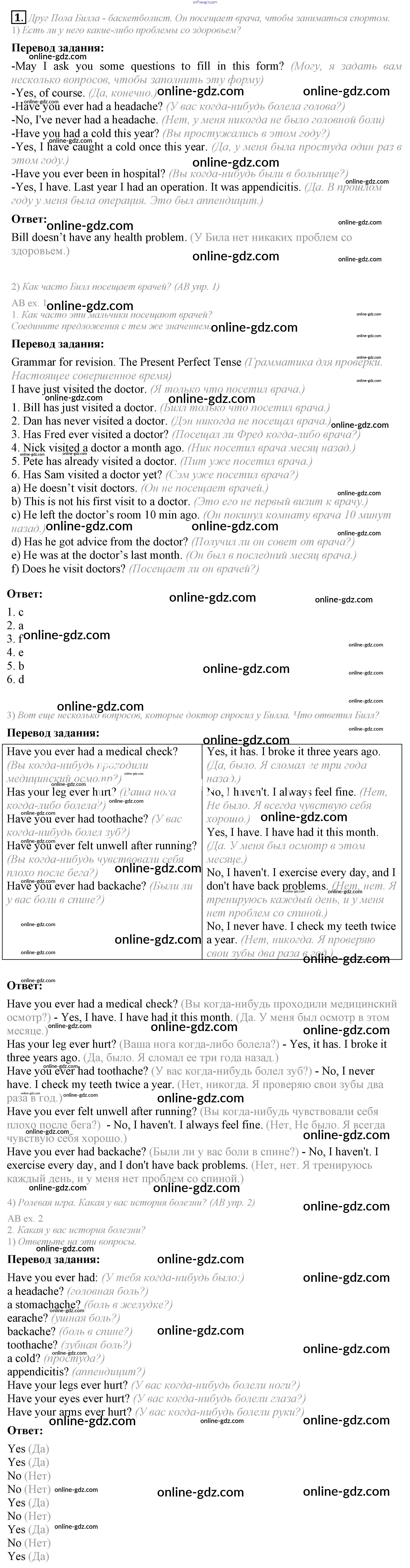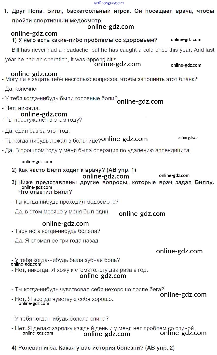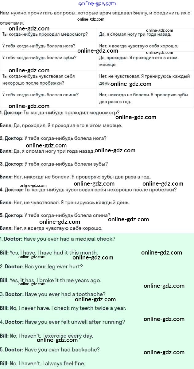 Готовые домашние задания по Английскому языку за 6 класс Учебник Кузовлев, Лапа Академический школьный учебник 2014 - Lesson 4-5 Unit 5. Do you care about your health? 1
