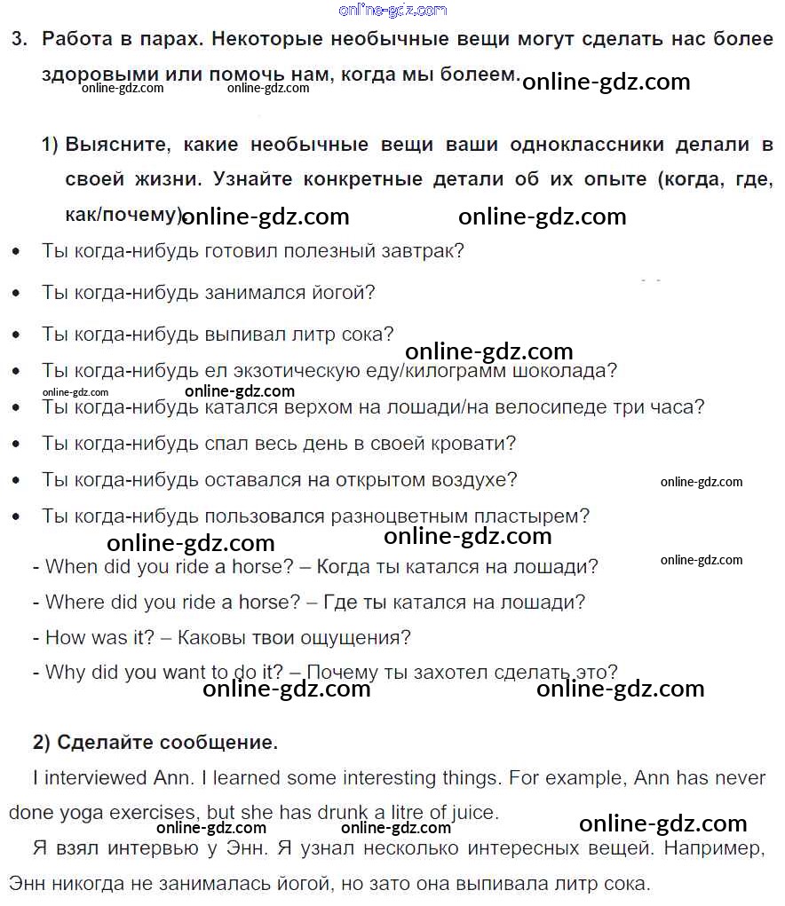 Готовые домашние задания по Английскому языку за 6 класс Учебник Кузовлев, Лапа Академический школьный учебник 2014 - Lesson 4-5 Unit 5. Do you care about your health? 3