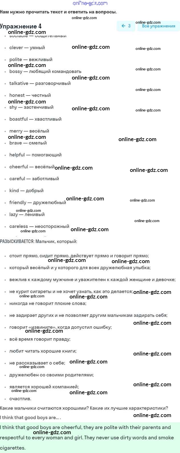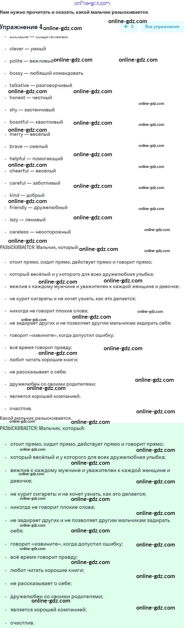 Готовые домашние задания по Английскому языку за 6 класс Учебник Кузовлев, Лапа Академический школьный учебник 2014 - Lesson 1 Unit 2. What are you like? 4