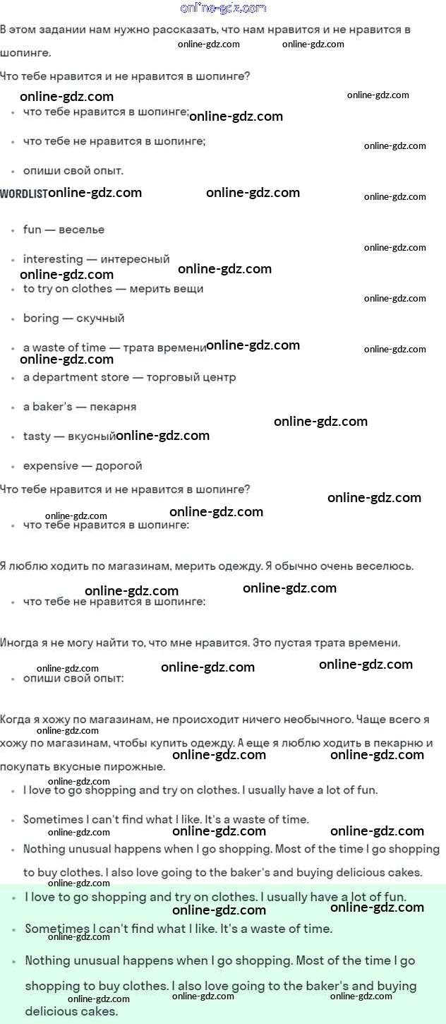 Готовые домашние задания по Английскому языку за 6 класс Учебник Кузовлев, Лапа Академический школьный учебник 2014 - Lesson 8-9 Unit 4. Do you like to go shopping? 5