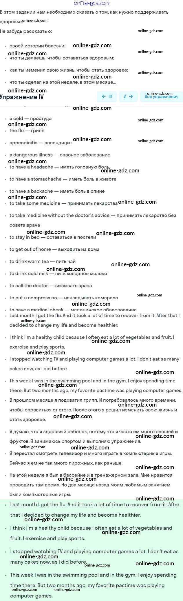 Готовые домашние задания по Английскому языку за 6 класс Учебник Кузовлев, Лапа Академический школьный учебник 2014 - Lesson 9-10 Unit 5. Do you care about your health? 4