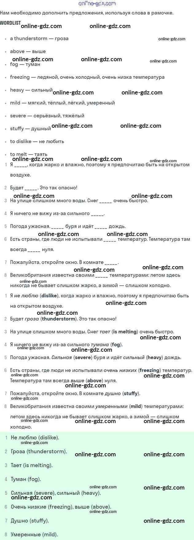 Готовые домашние задания по Английскому языку за 6 класс Учебник Кузовлев, Лапа Академический школьный учебник 2014 - Next lesson is a consolidation lesson Unit 6. Whatever the weather... 1