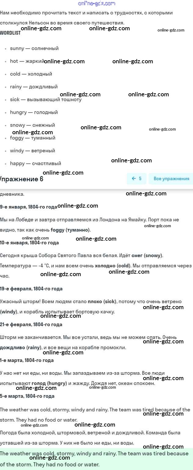 Готовые домашние задания по Английскому языку за 6 класс Учебник Кузовлев, Лапа Академический школьный учебник 2014 - Lesson 1 Unit 6. Whatever the weather... 6