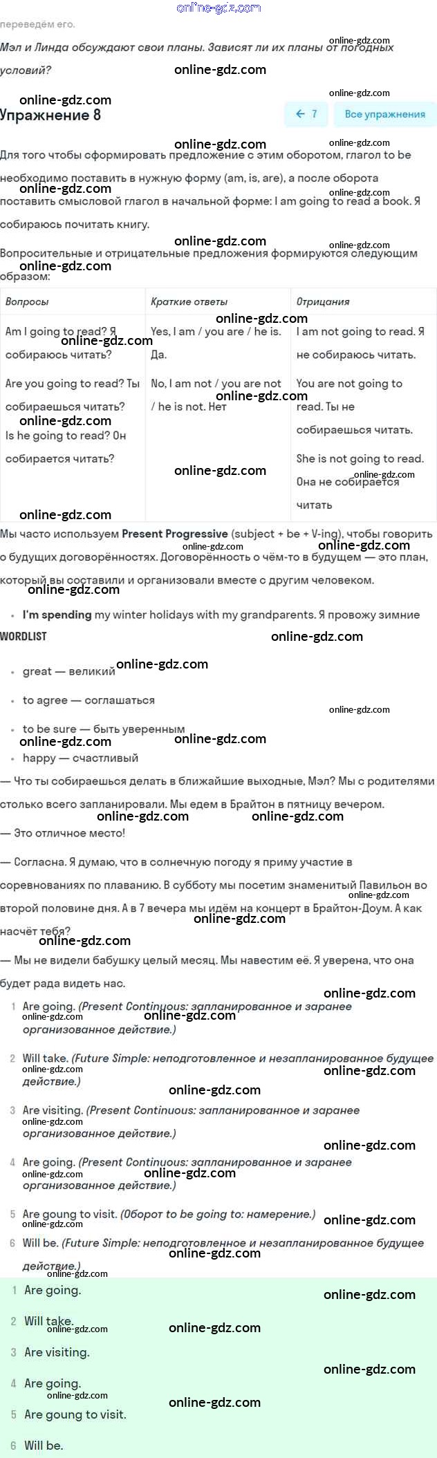 Готовые домашние задания по Английскому языку за 6 класс Учебник Кузовлев, Лапа Академический школьный учебник 2014 - Lesson 3 Unit 6. Whatever the weather... 8