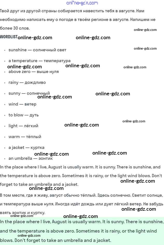 Готовые домашние задания по Английскому языку за 6 класс Учебник Кузовлев, Лапа Академический школьный учебник 2014 - Lesson 7 Unit 6. Whatever the weather... 5
