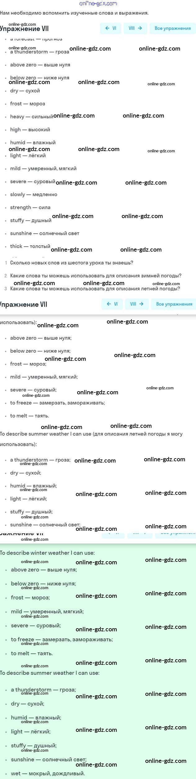 Готовые домашние задания по Английскому языку за 6 класс Учебник Кузовлев, Лапа Академический школьный учебник 2014 - Lesson 7 Unit 6. Whatever the weather... 7