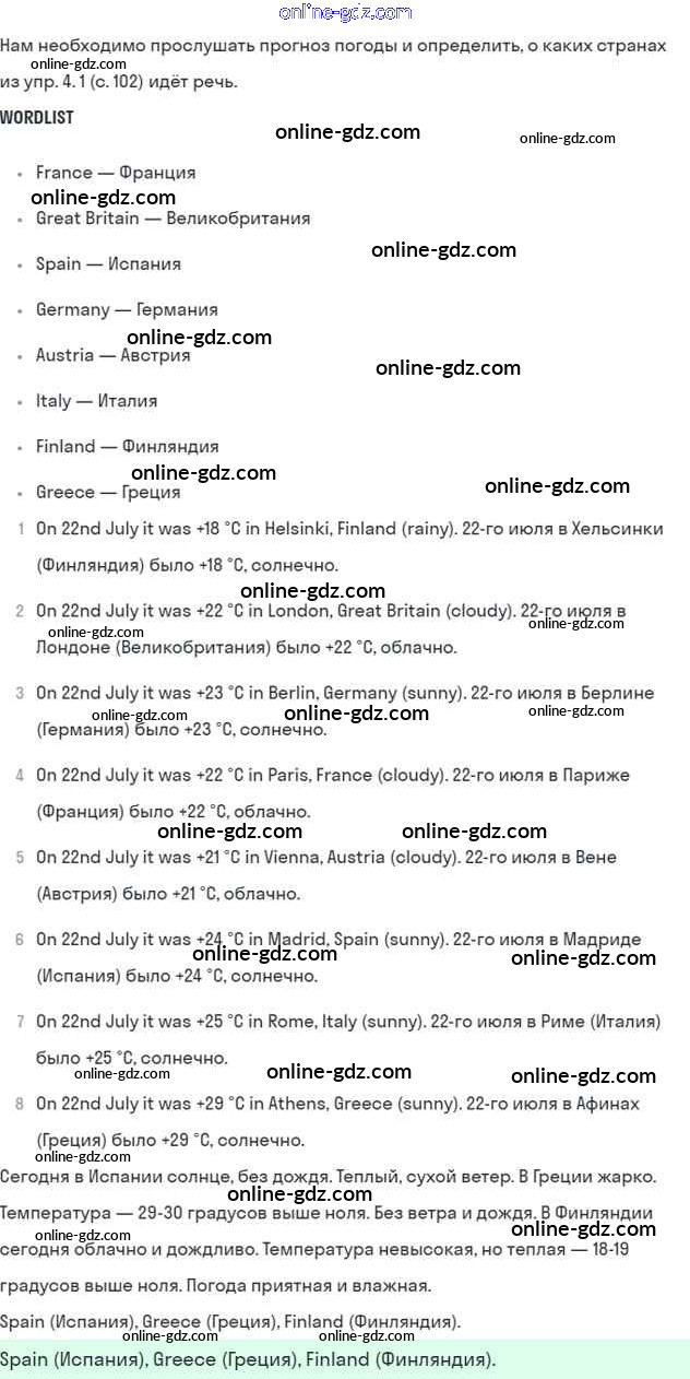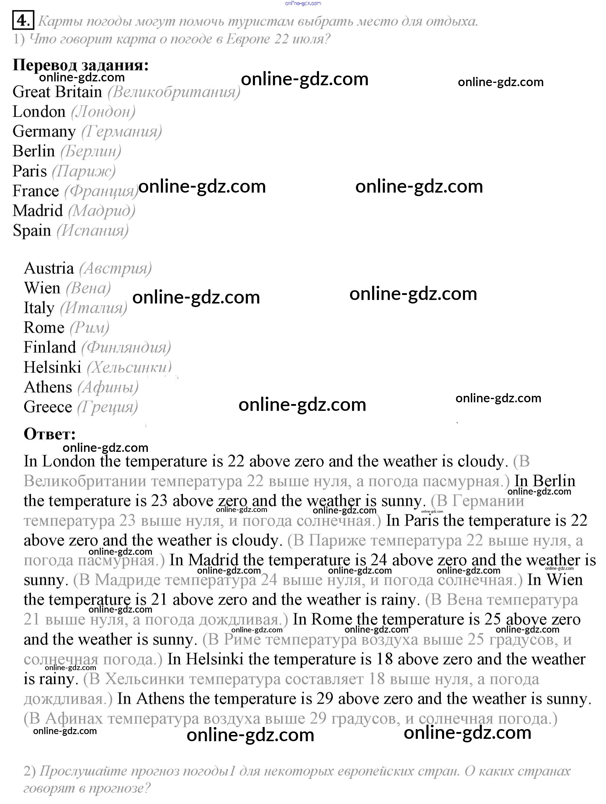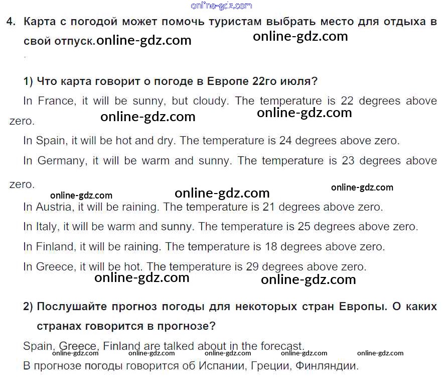 Готовые домашние задания по Английскому языку за 6 класс Учебник Кузовлев, Лапа Академический школьный учебник 2014 - Lesson 1 Unit 6. Whatever the weather... 4