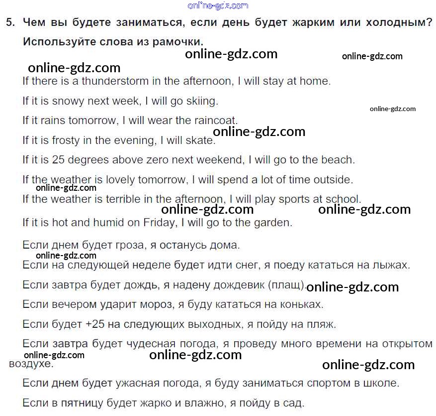 Готовые домашние задания по Английскому языку за 6 класс Учебник Кузовлев, Лапа Академический школьный учебник 2014 - Lesson 2 Unit 6. Whatever the weather... 5