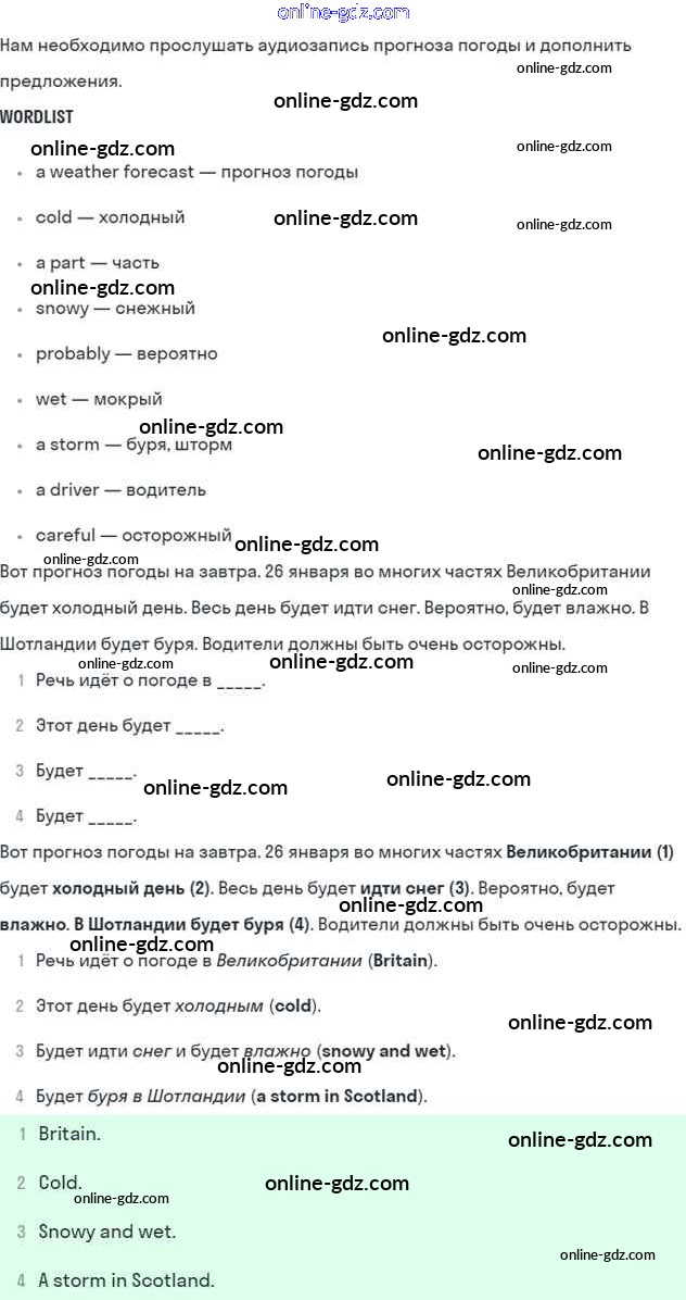 Готовые домашние задания по Английскому языку за 6 класс Учебник Кузовлев, Лапа Академический школьный учебник 2014 - Lesson 7 Unit 6. Whatever the weather... 1