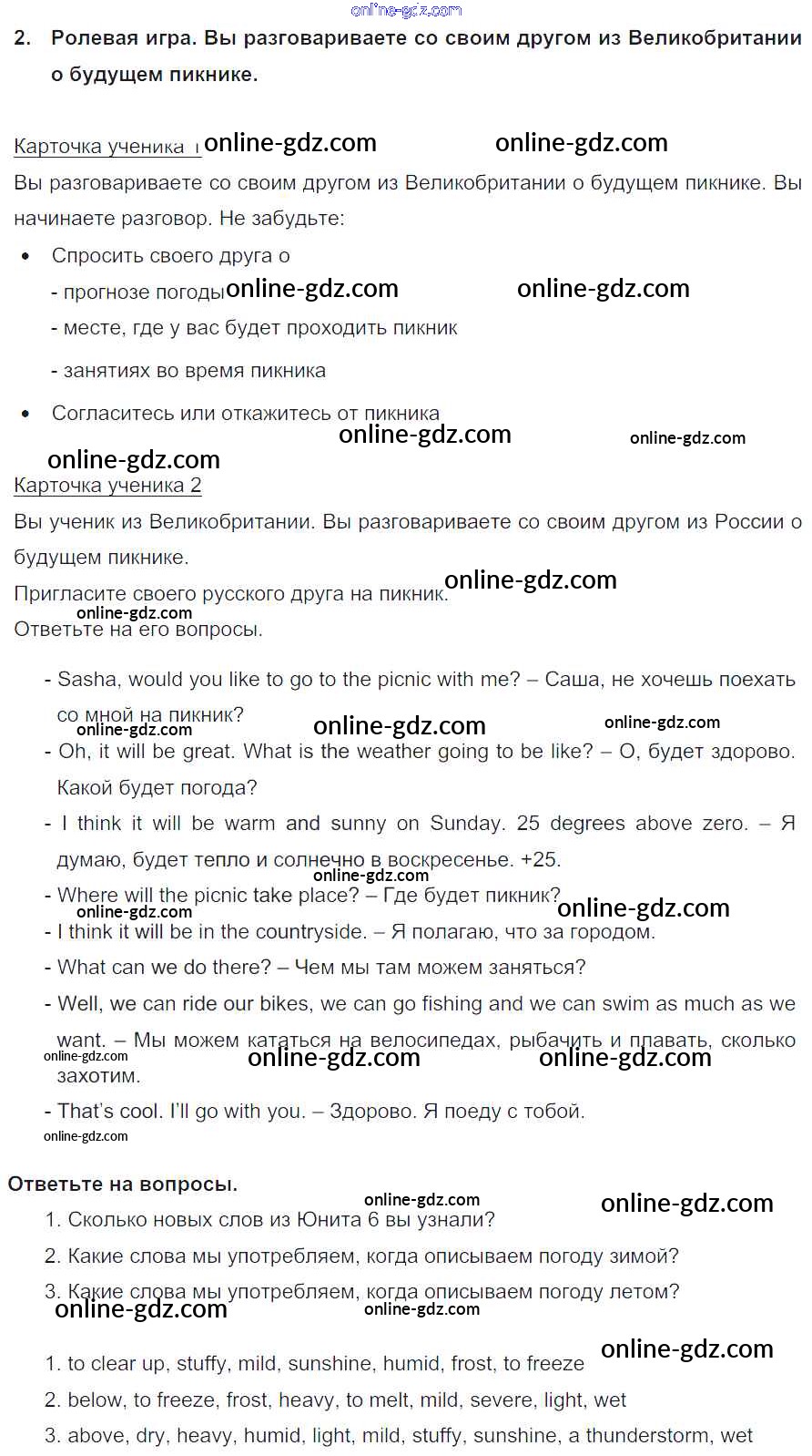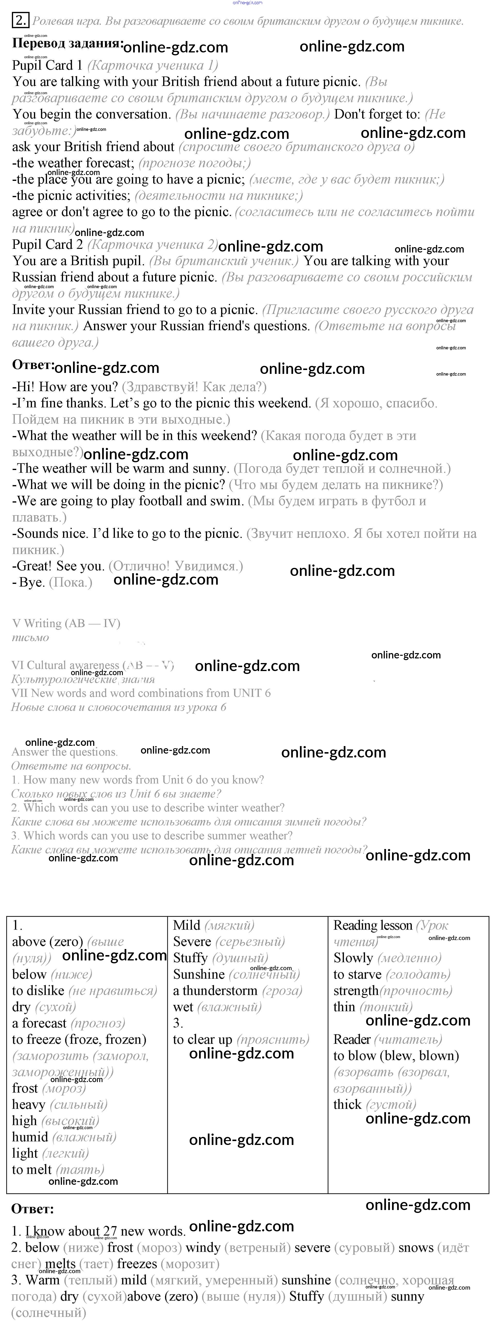 Готовые домашние задания по Английскому языку за 6 класс Учебник Кузовлев, Лапа Академический школьный учебник 2014 - Lesson 7 Unit 6. Whatever the weather... 2